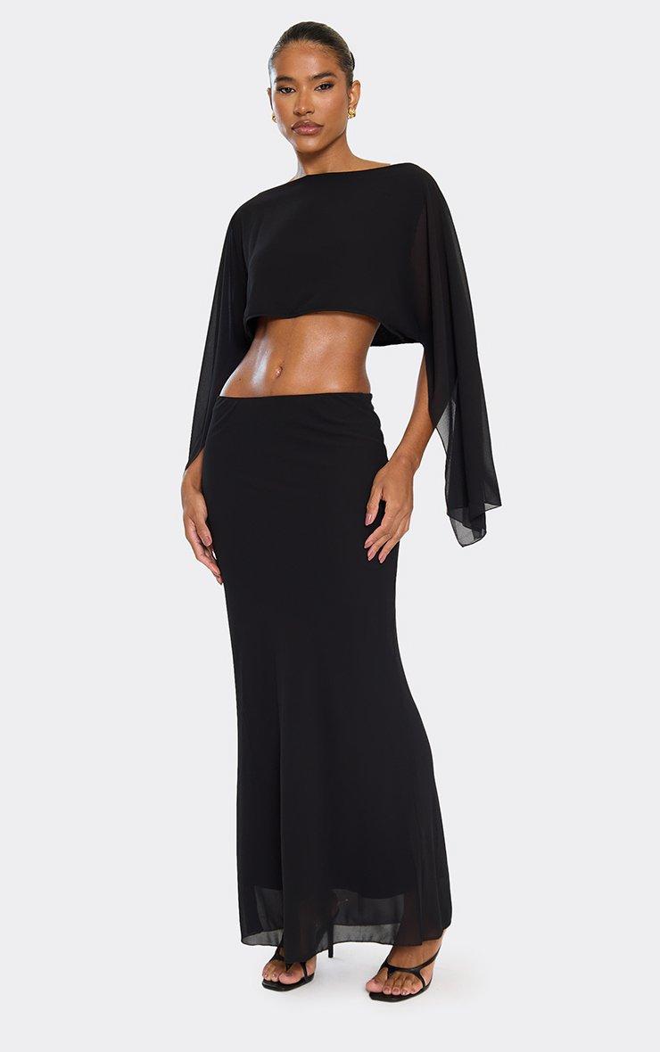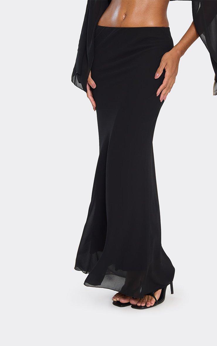 Mid Rise Ruched Detail Maxi Skirt In Black
