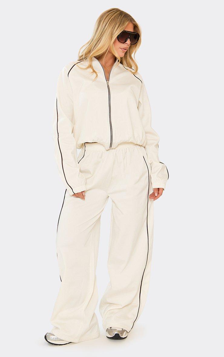 Oversized Mid Rise Contrast Stripe Wide Leg Joggers In Grey