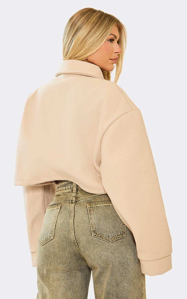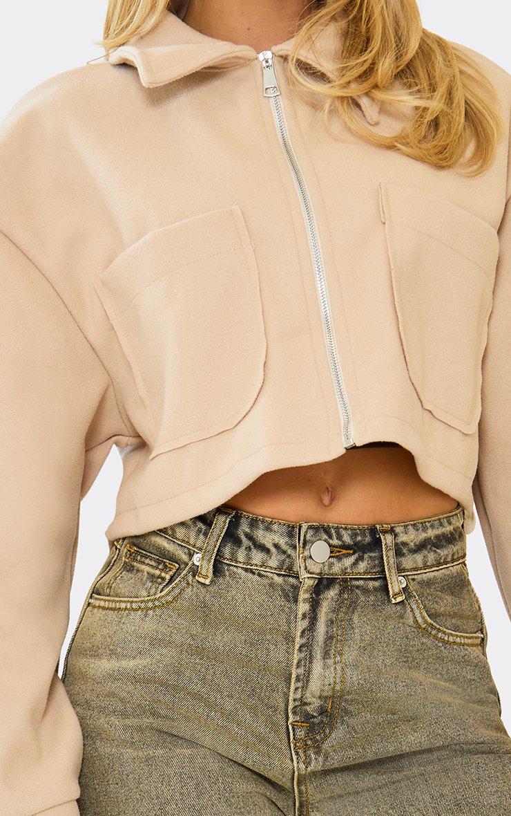 Long Sleeve Pocket Detail Cropped Jacket In Stone Faux Suede