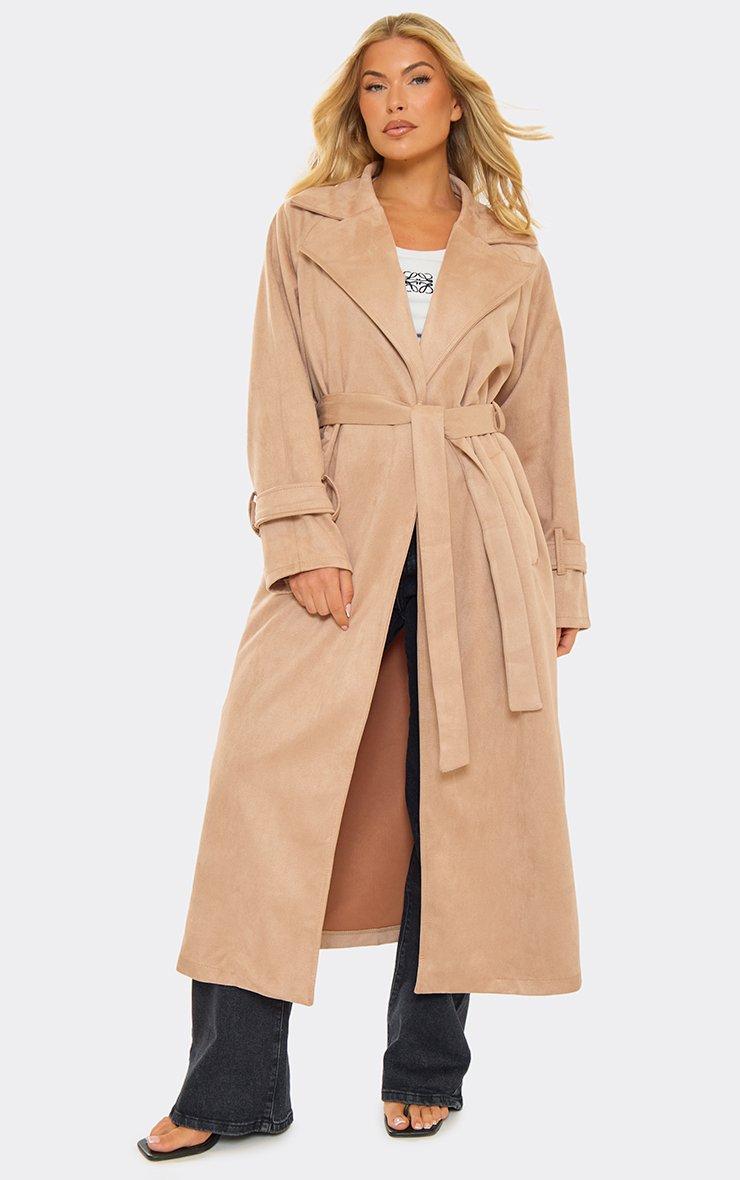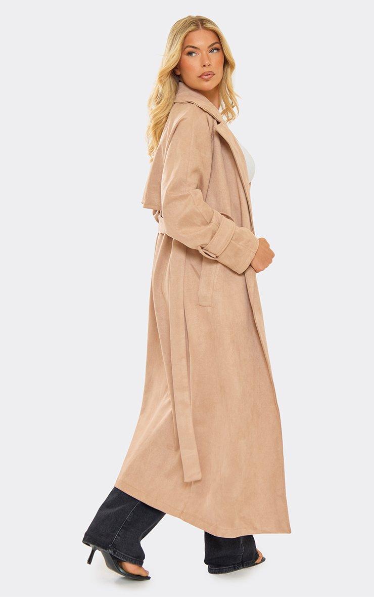 Long Sleeve Cinched Waist Detail Tie Back Blazer In Stone Faux Suede