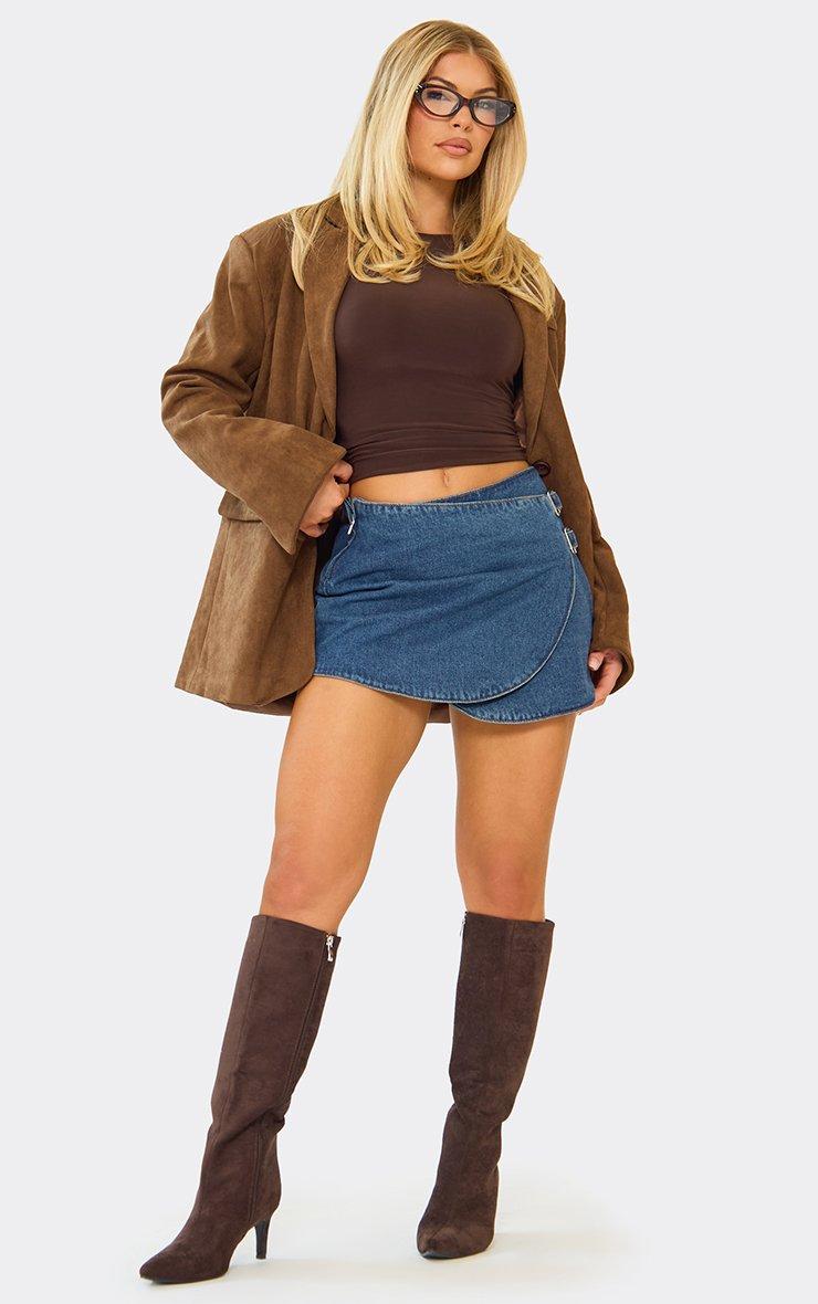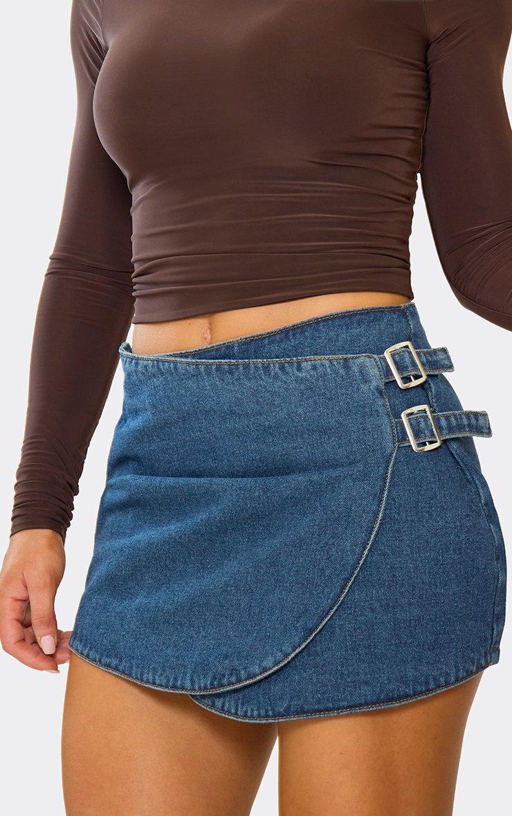 Wrap Front Buckle Detail Mini Skirt In Mid Blue Denim