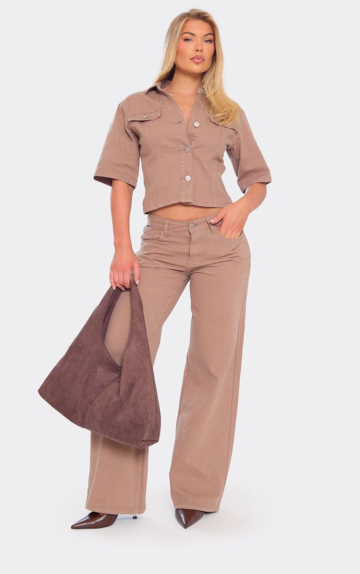 Low Rise Wide Leg Jeans In Chocolate Brown Denim