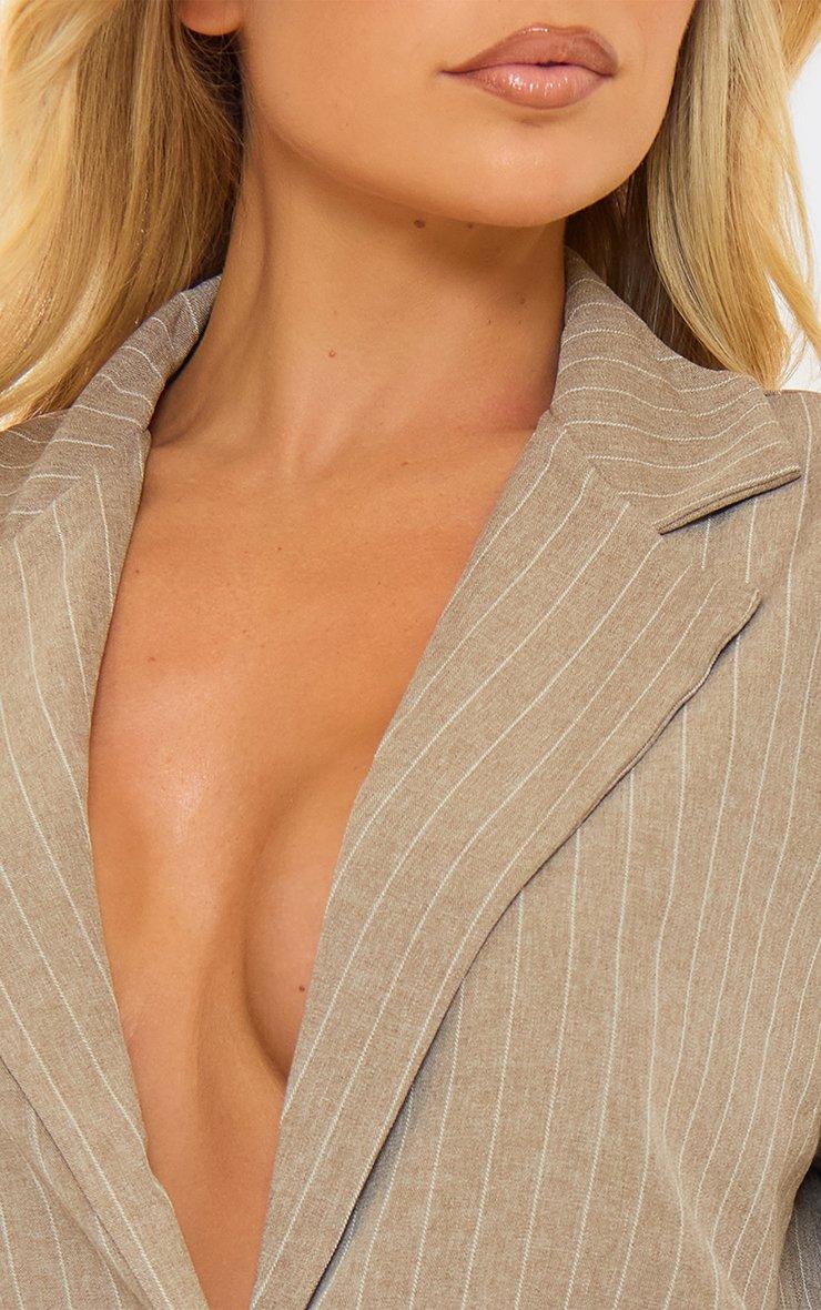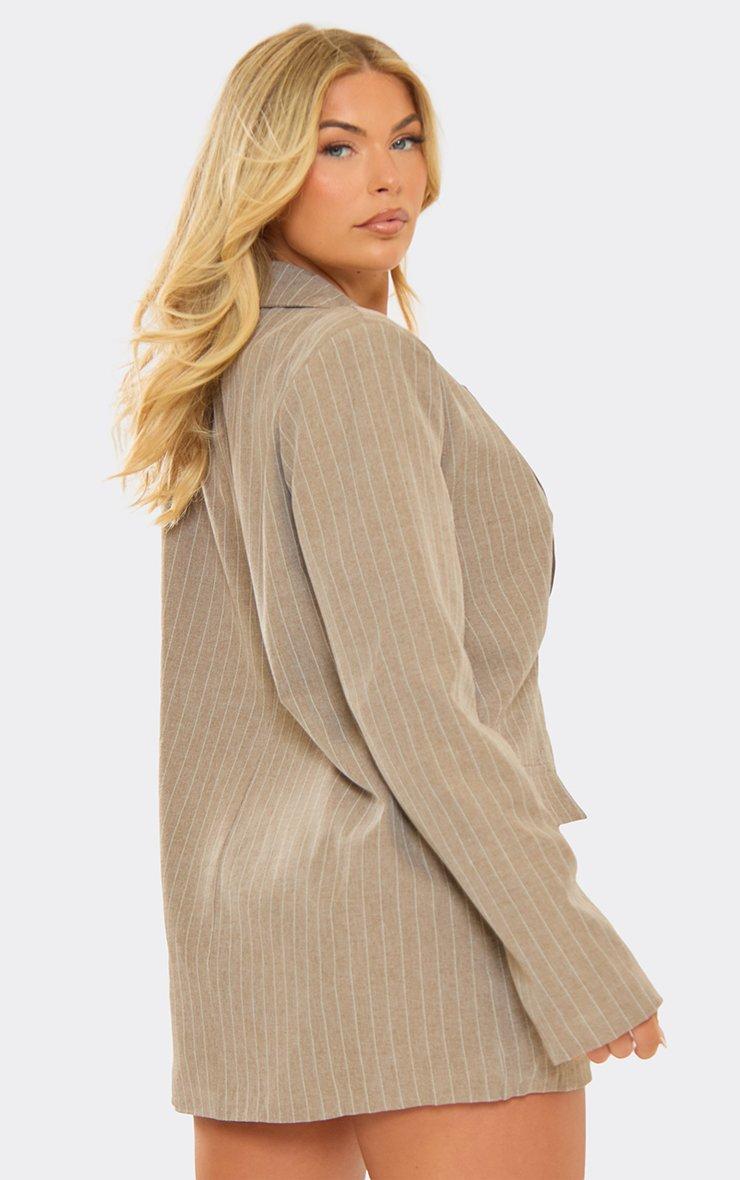 Long Sleeve Single Breasted Oversized Blazer In Taupe Pinstripe