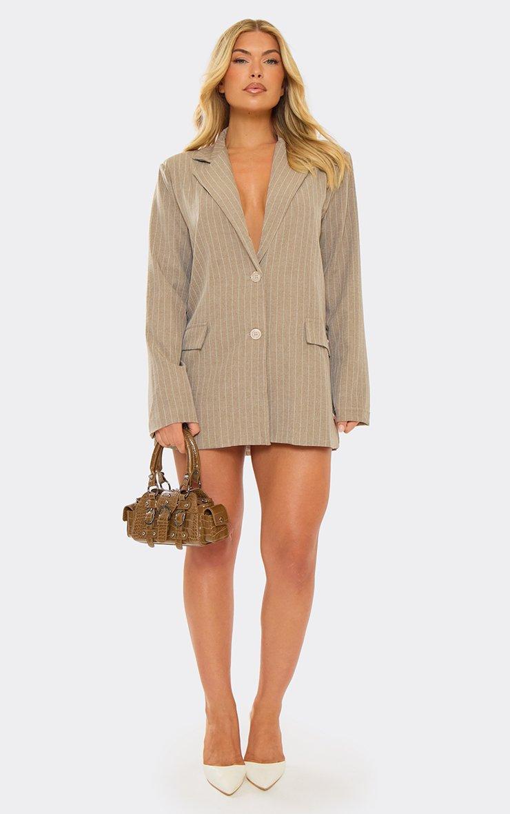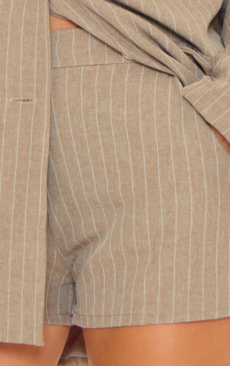 Mid Rise Tailored Mini Shorts In Taupe Pinstripe