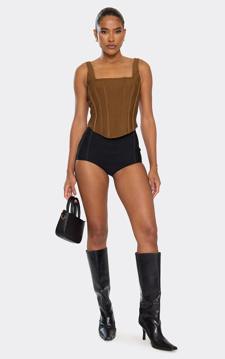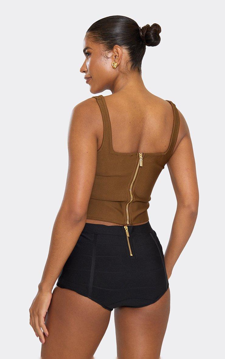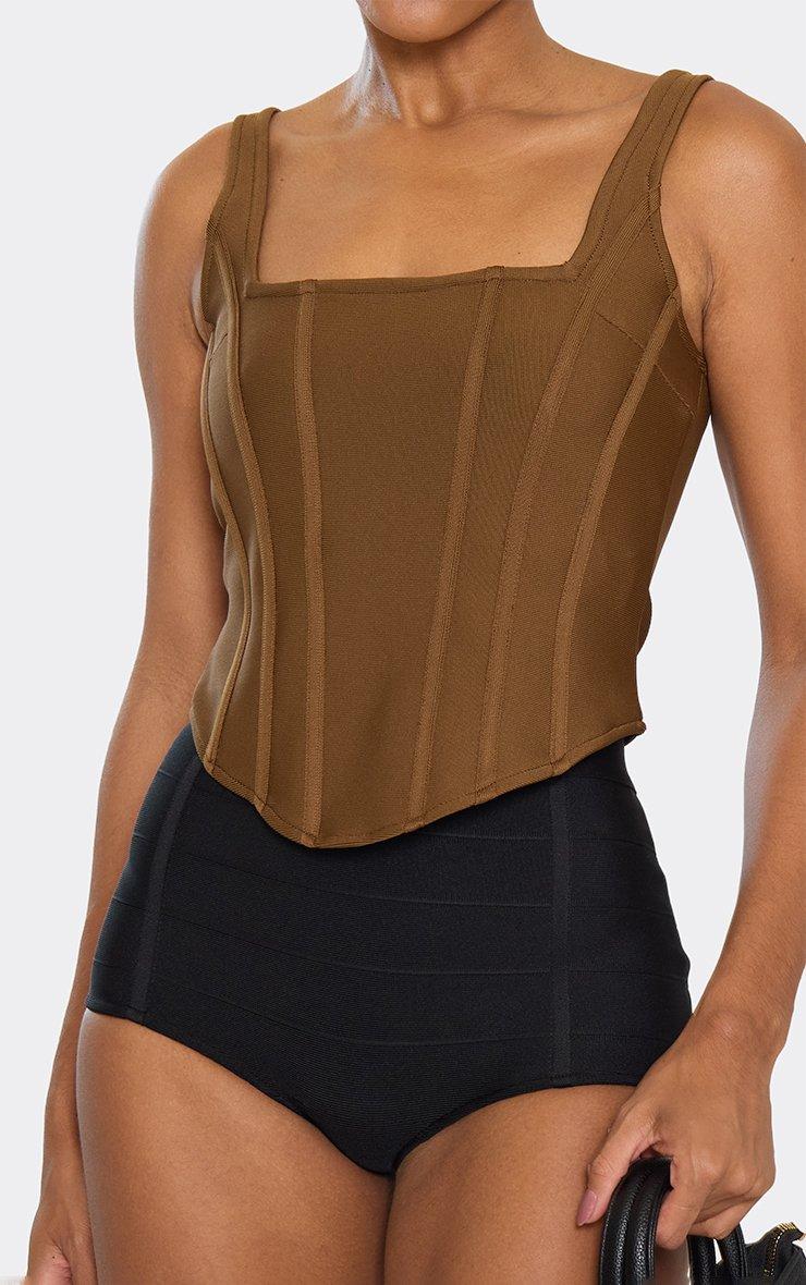 Scoop Neck Strappy Corset Top In Khaki Green Lace