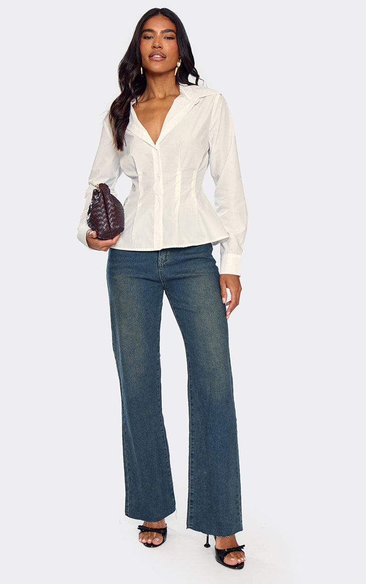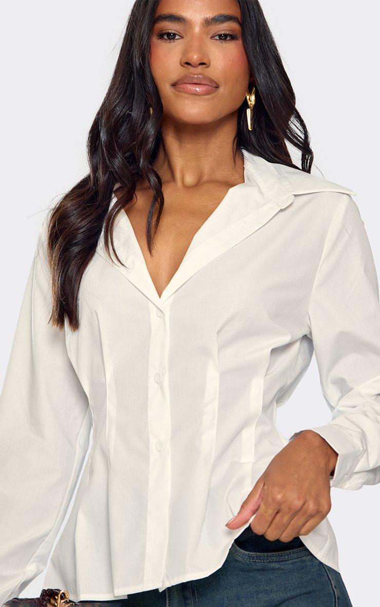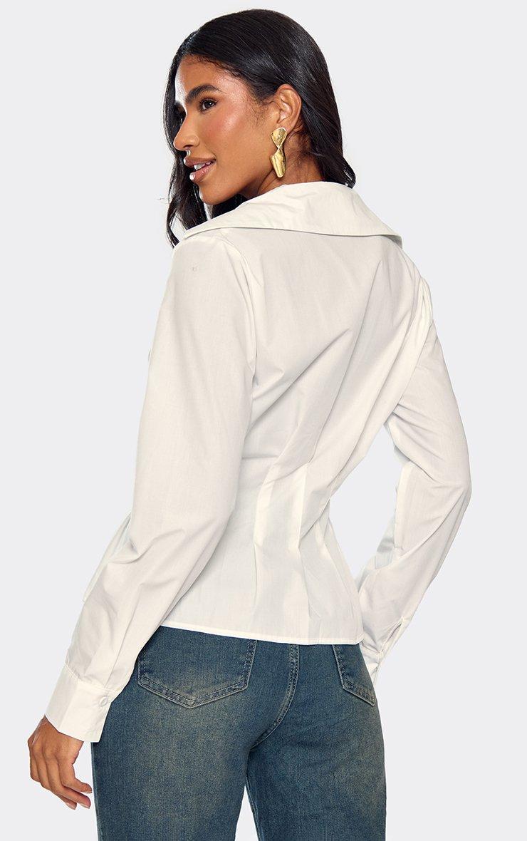 Long Sleeve Cinched Waist Detail Shirt In White
