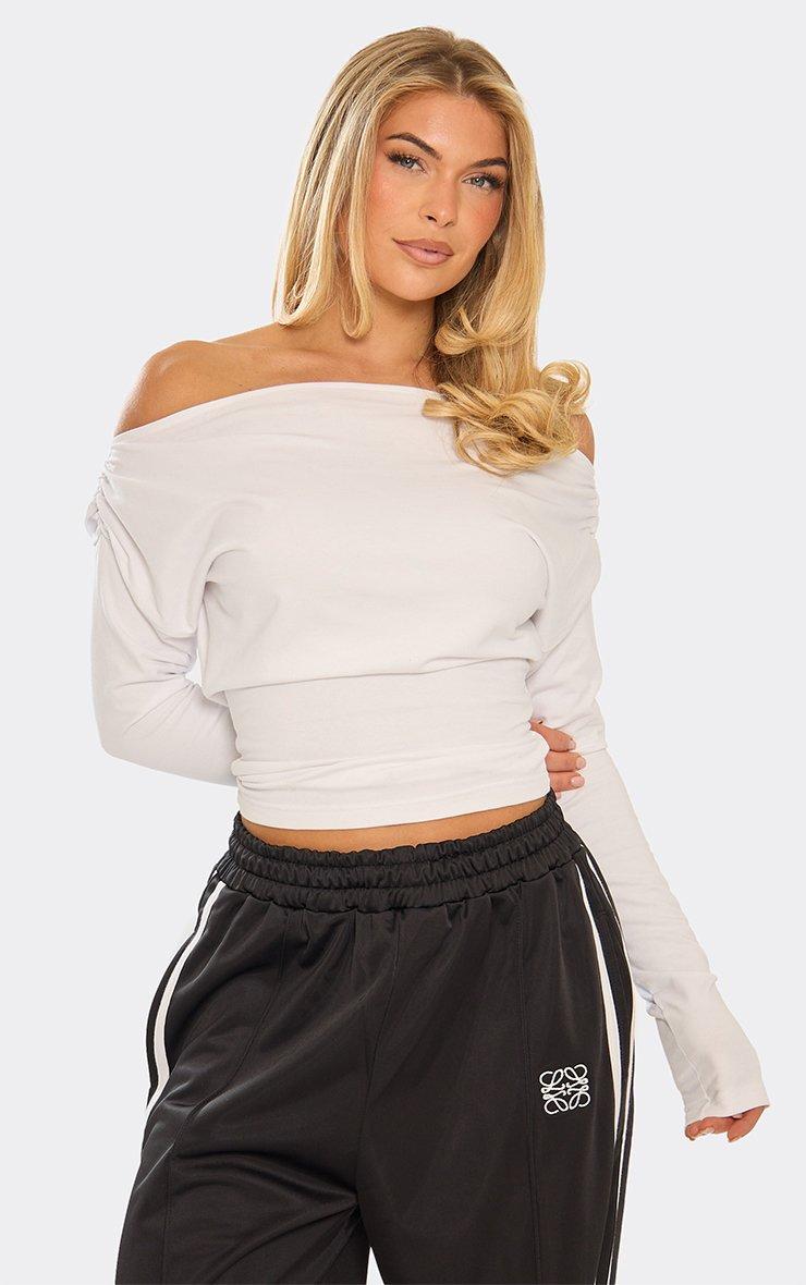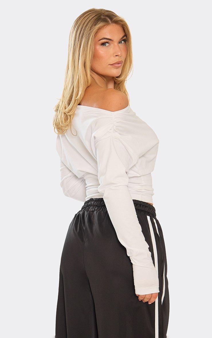 Bardot Long Sleeve Cinched Waist Detail Top In White