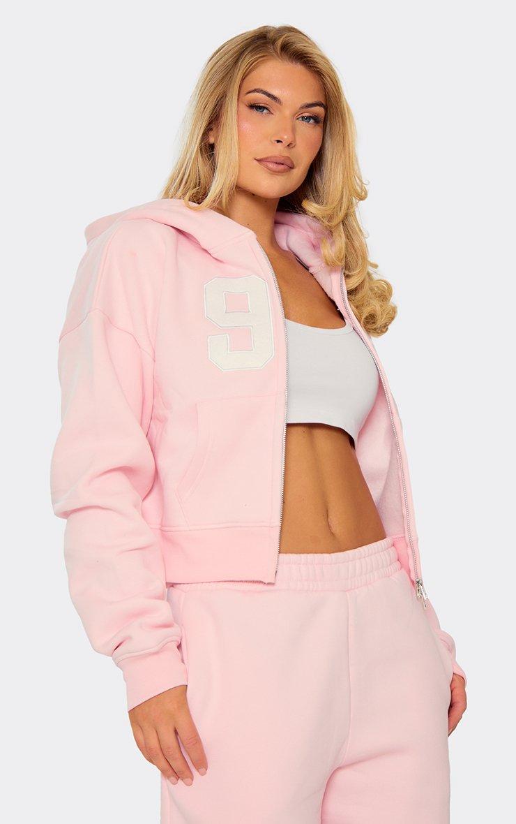 Long Sleeve 99' Graphic Double Zip Boxy Hoodie In Baby Pink