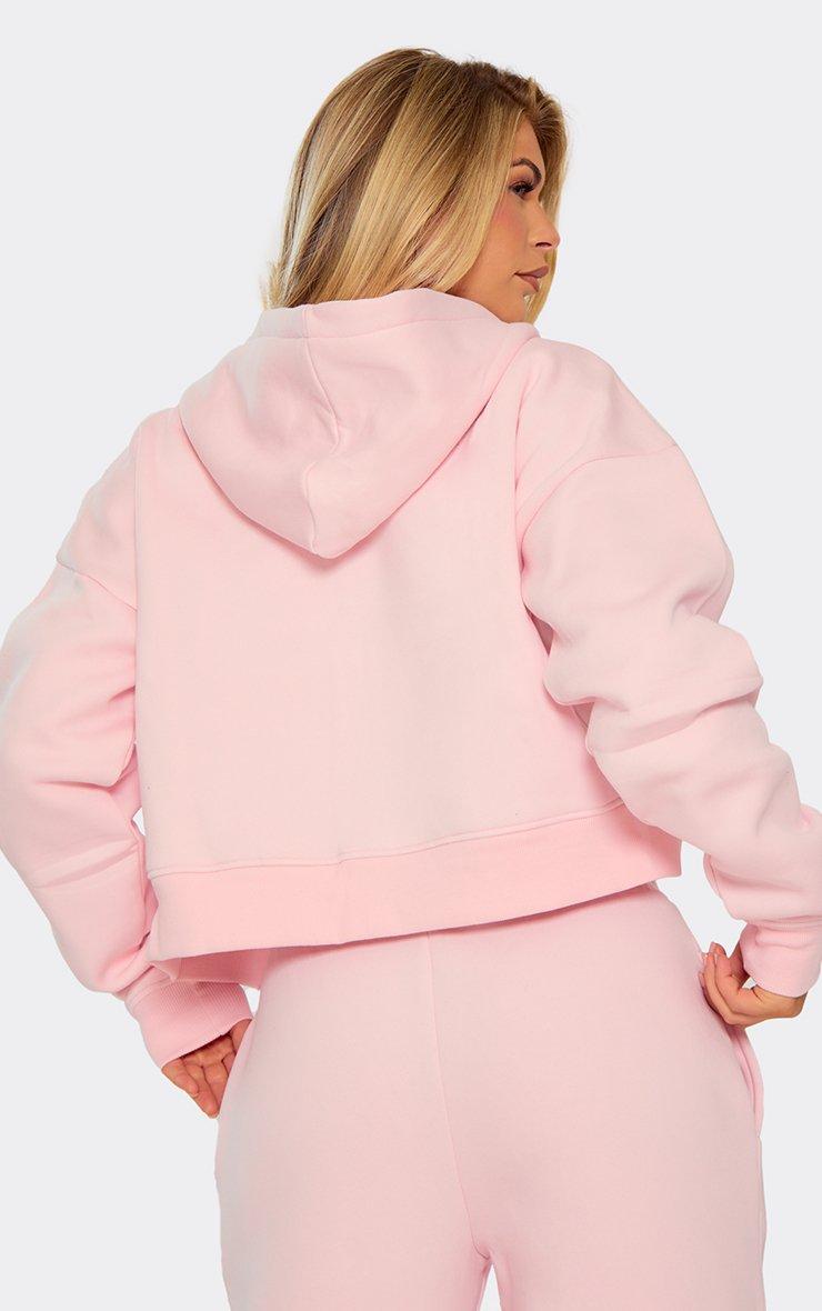 Long Balloon Sleeve Zip Up Front Cropped Hoodie In Pink