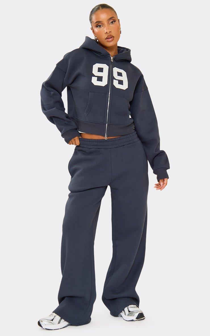 Mid Rise Contrast Piping Detail Wide Leg Joggers In Navy