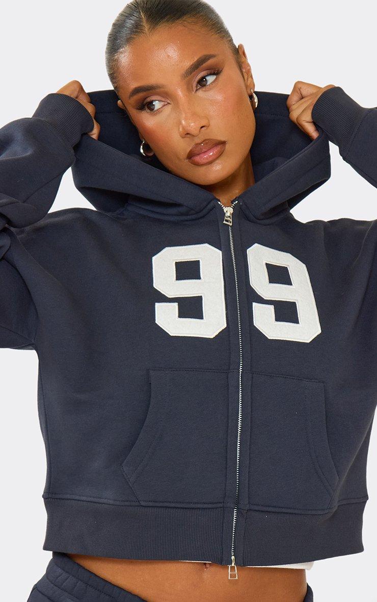 Contrast Stripe Fitted Zip Up Hoodie In Navy