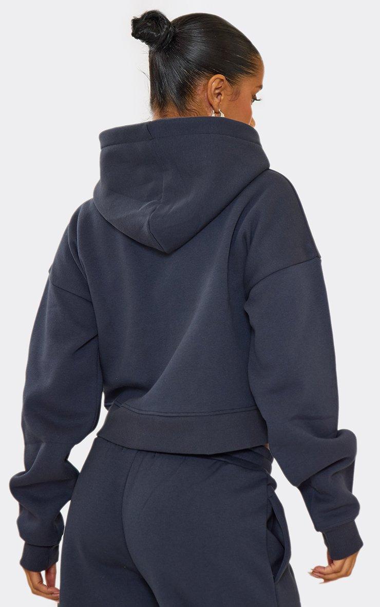 Long Sleeve Elasticated Waist Detail Cropped Sweater In Navy