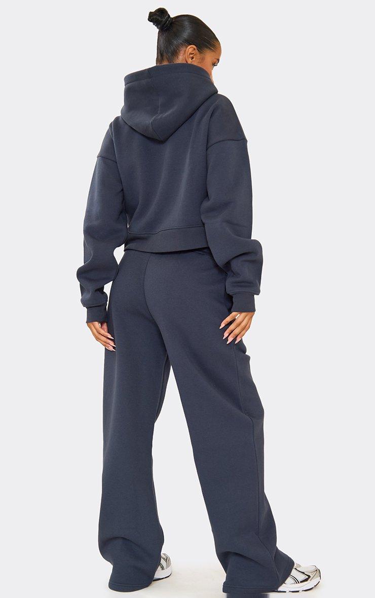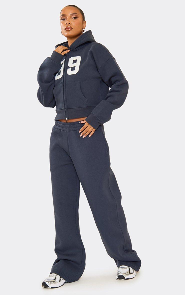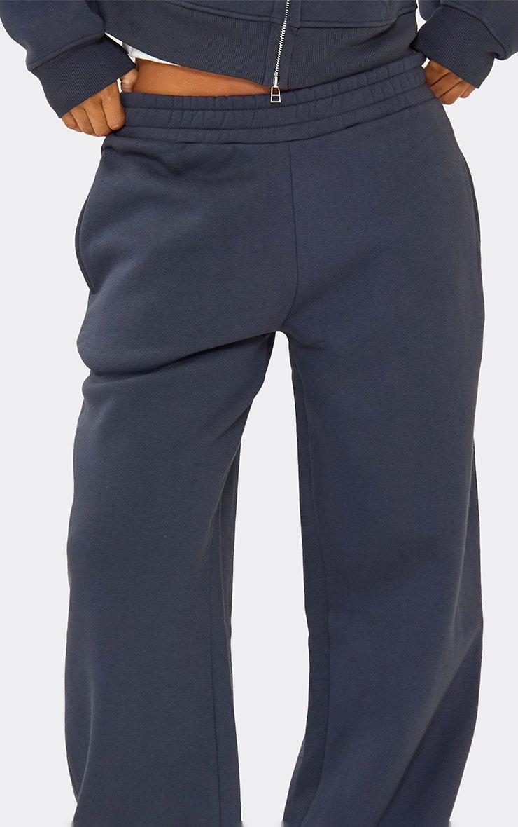 Mid Rise Contrast Piping Detail Wide Leg Joggers In Navy
