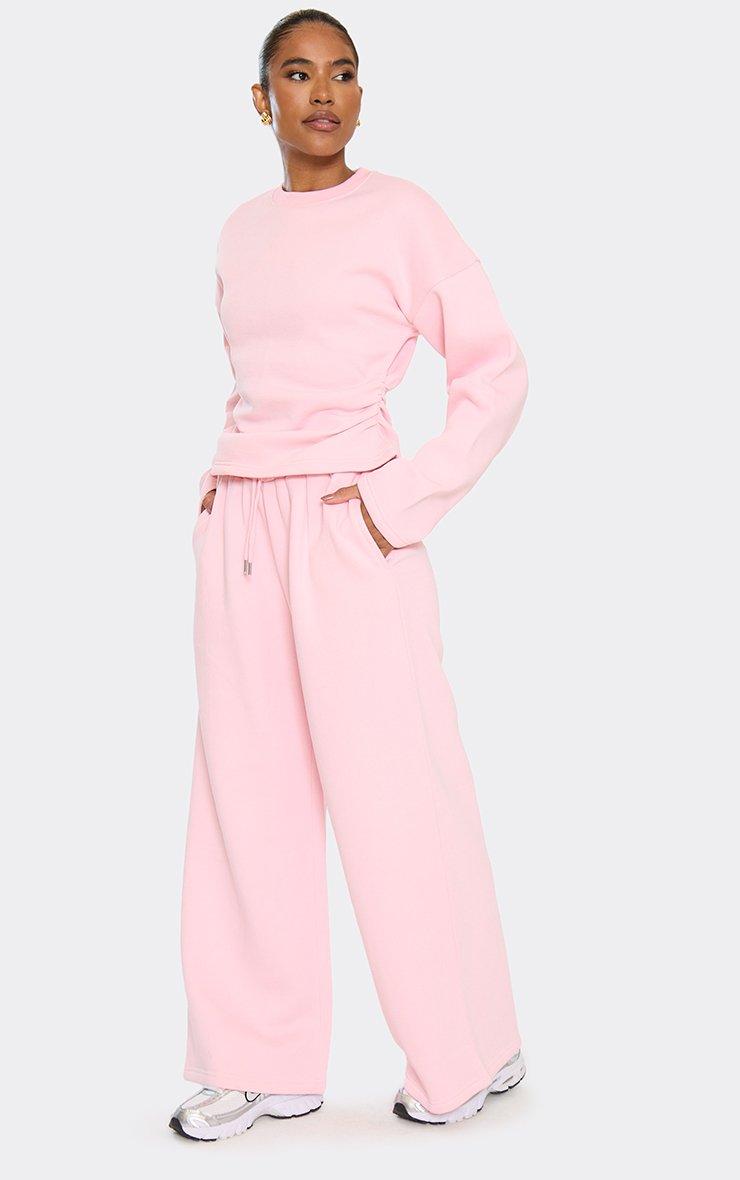 Low Rise Wide Leg Joggers In Baby Pink