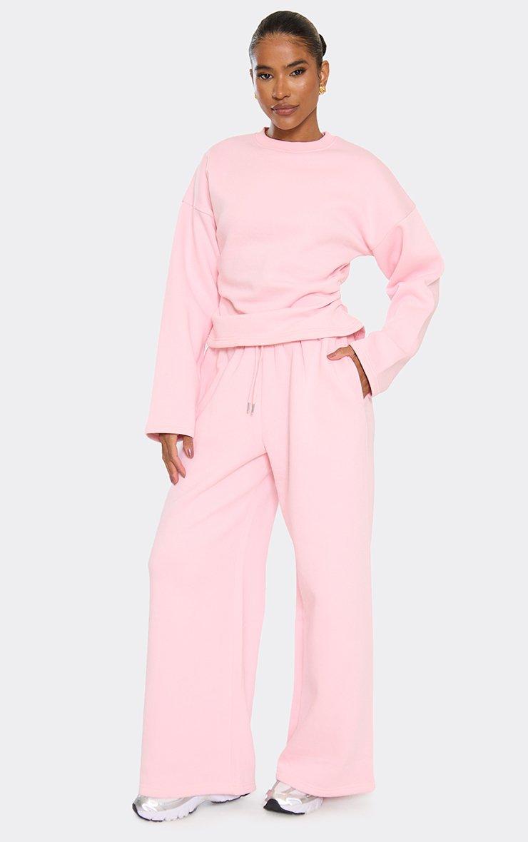 Mid Rise Pocket Detail Wide Leg Joggers In Light Grey Marl