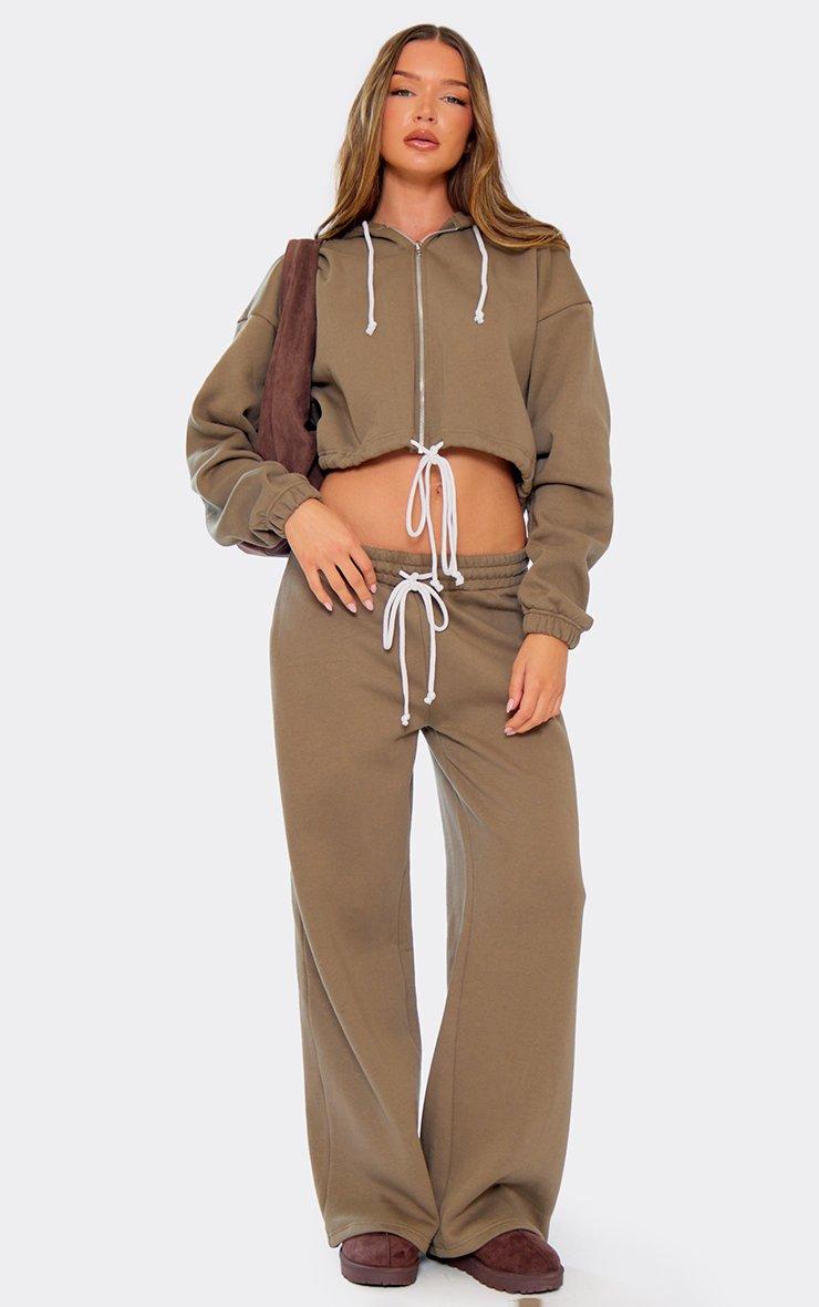 Elasticated Waist Wide Leg Joggers In Chocolate Brown