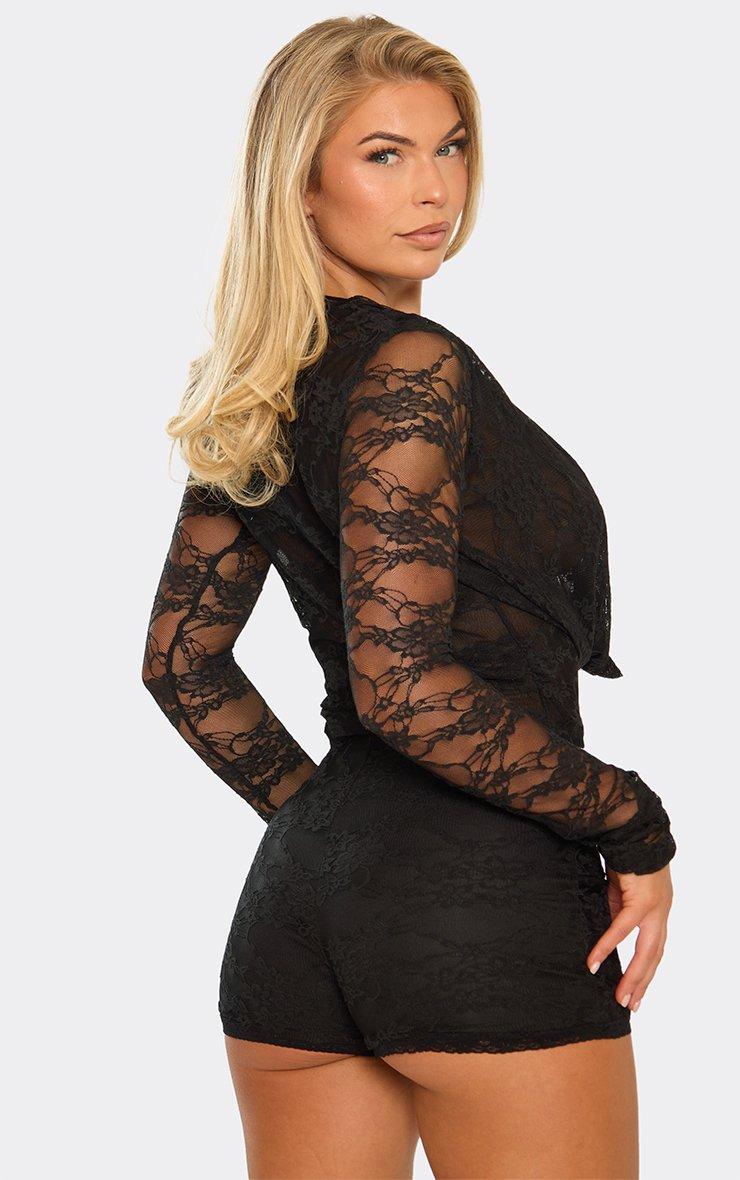 Low Rise Ruched Front Detail Hot Pants In Black Lace