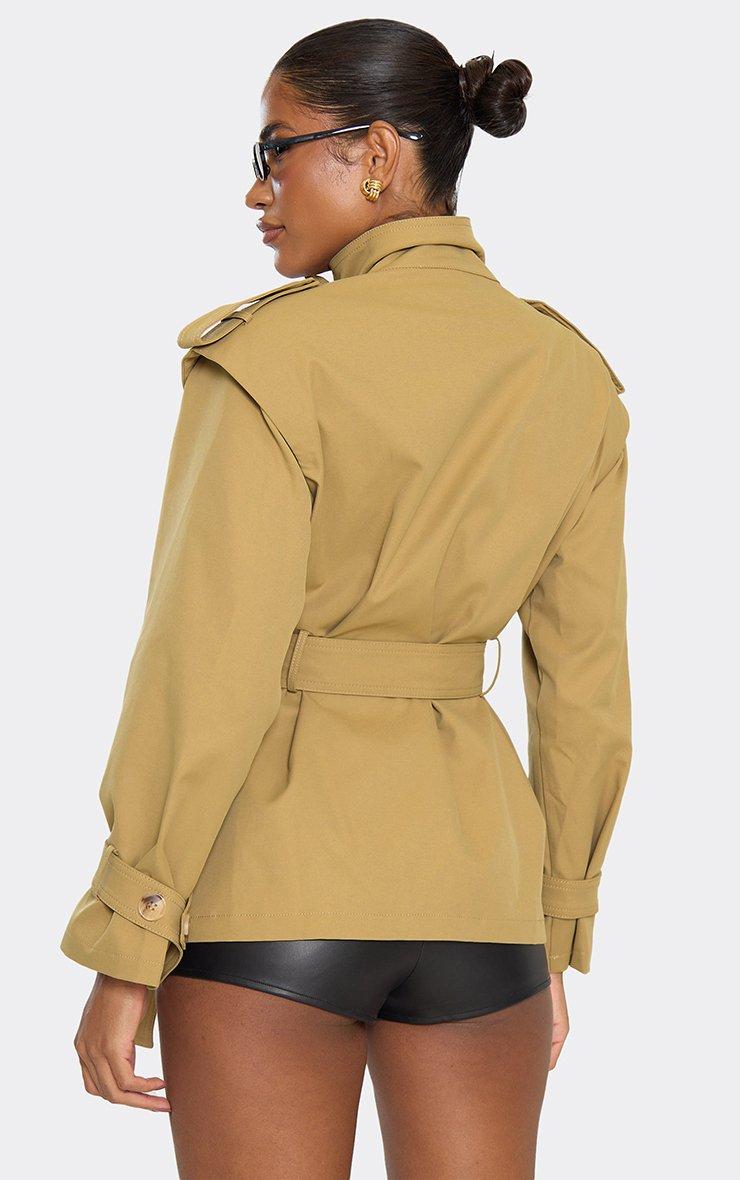 Long Sleeve Tie Belt Detail Jacket In Chocolate Brown Faux Suede.