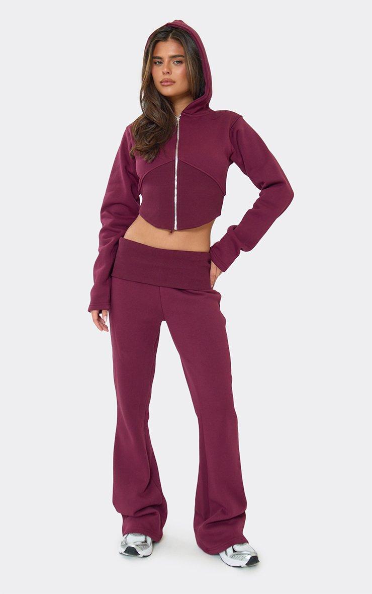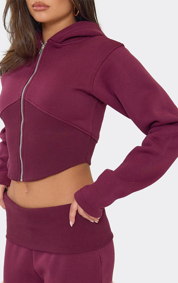 Cinched Waist Cropped Zip Up Hoodie In Washed Plum