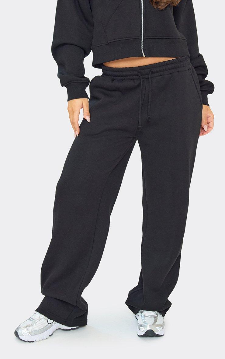 Drawstring Low Rise Wide Leg Joggers In Black
