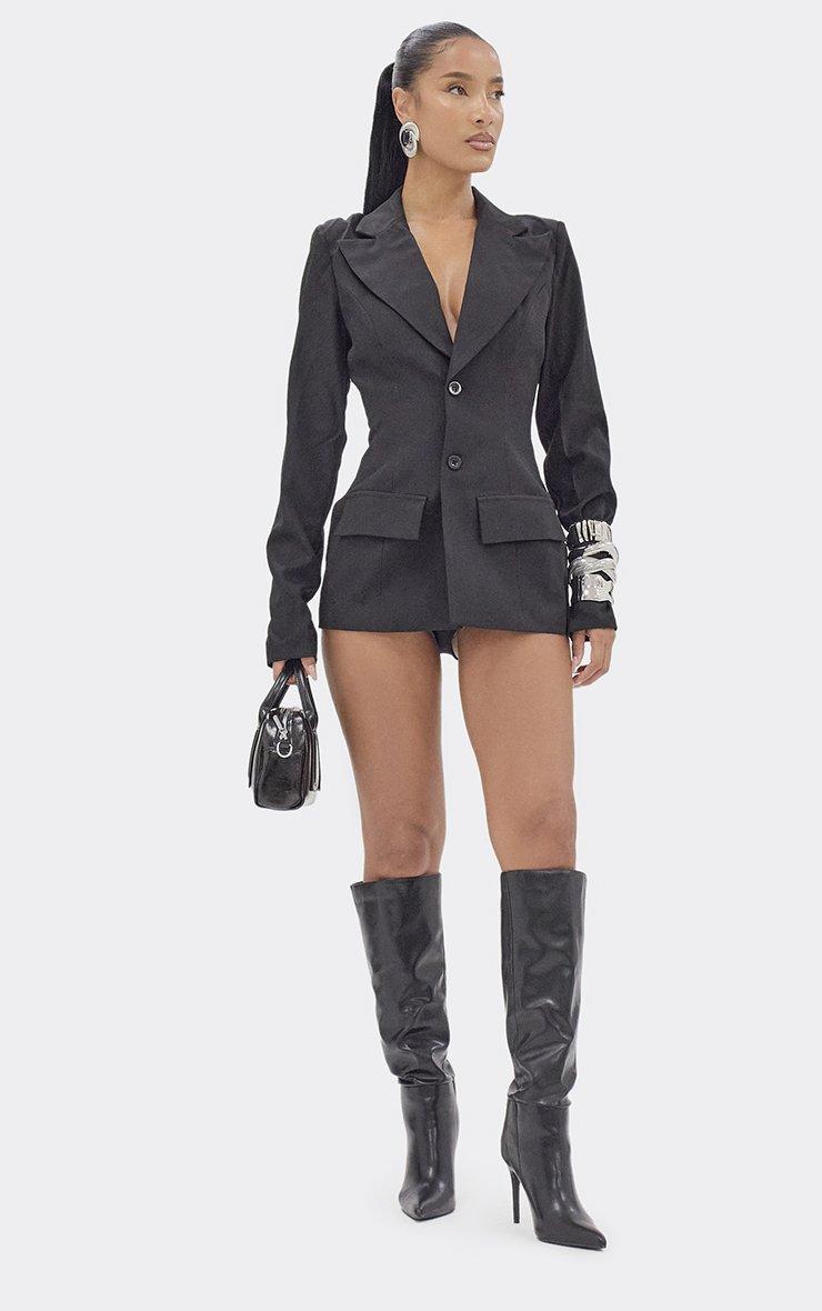Long Sleeve Hook And Eye Corset Detail Blazer In Black