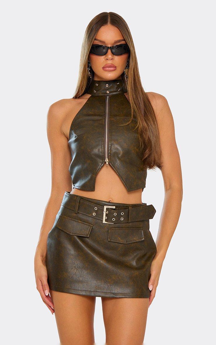 Halterneck Lace Up Detail Top In Chocolate Brown