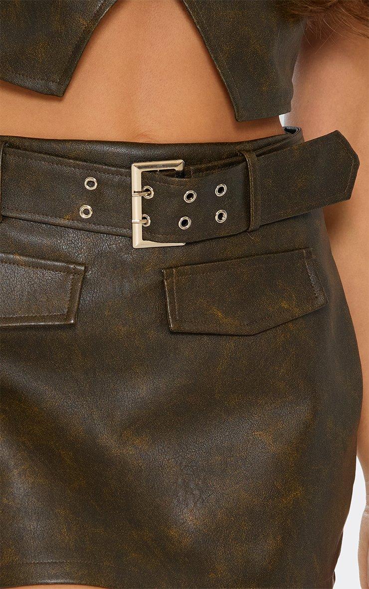 high waisted beltedl mini skirt in brown faux leather
