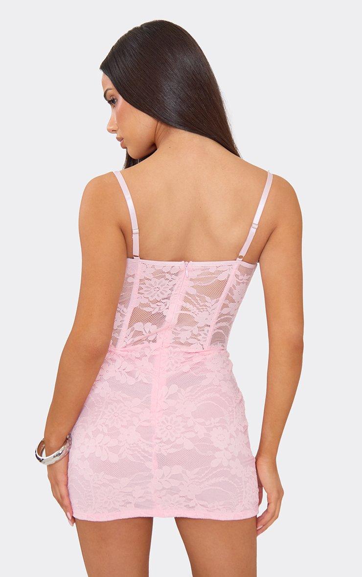strappy underwired lace trim corset detail mini dress in pink