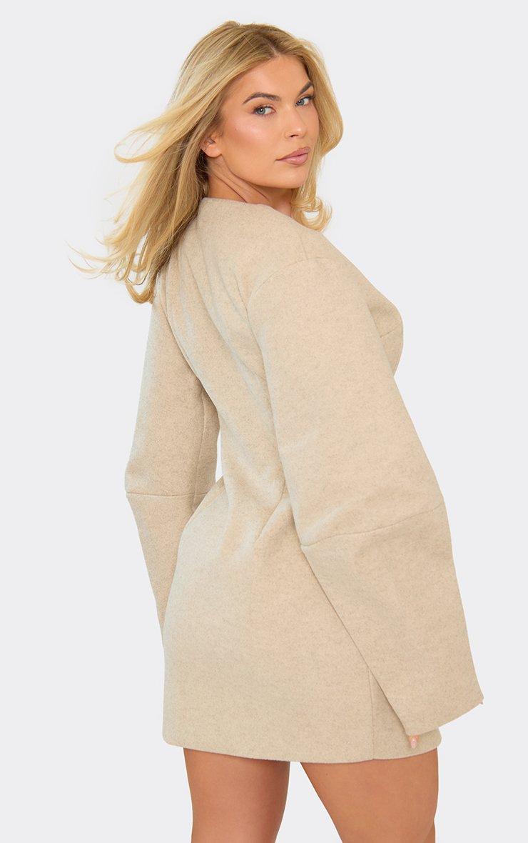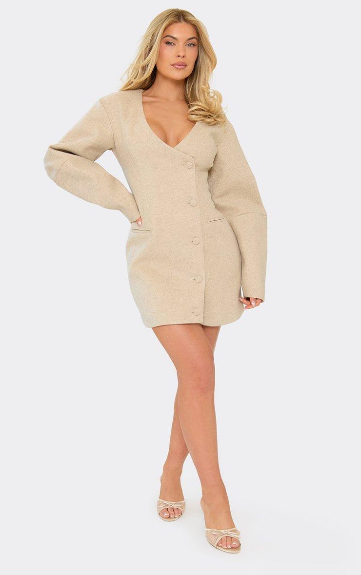 balloon sleeve button front wool look blazer dress in beige