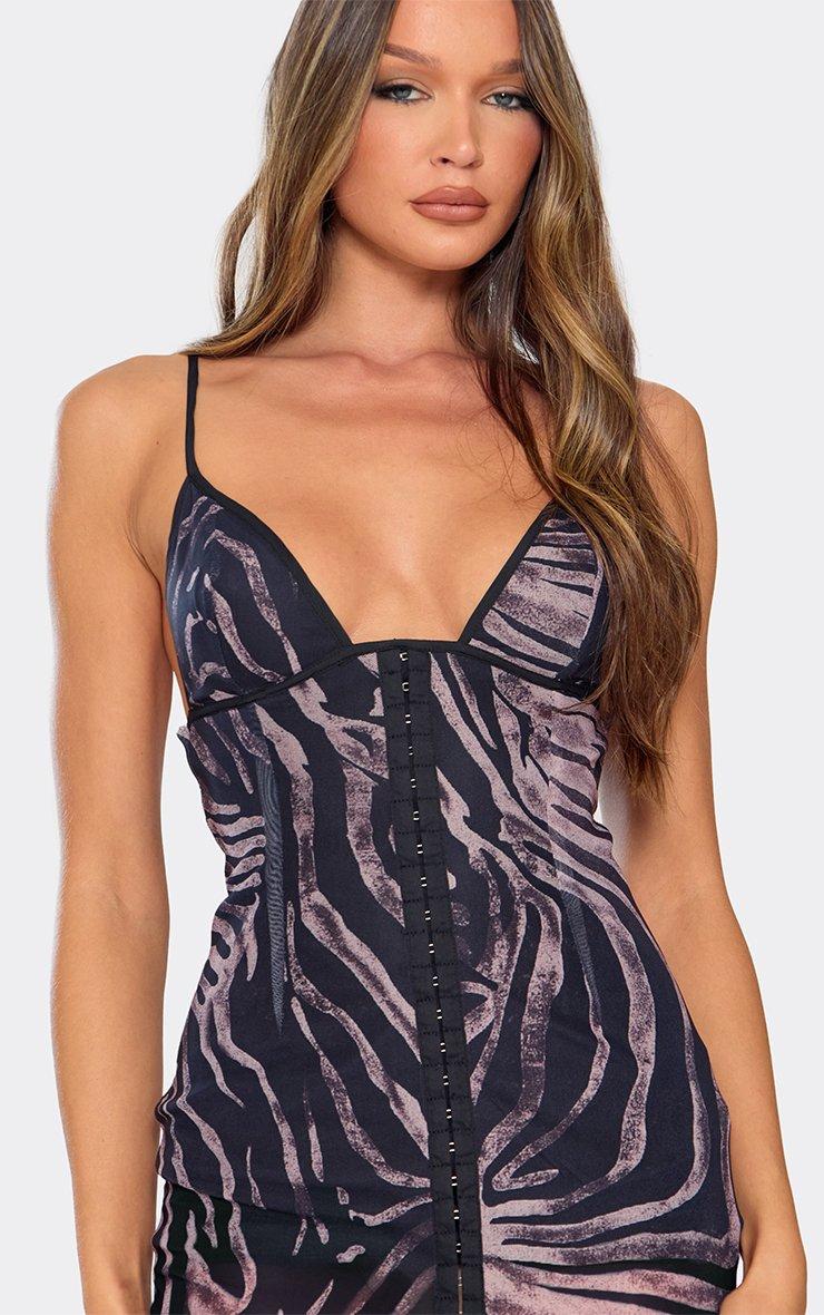 Strappy Hook And Eye Detail Mini Dress In Multi Animal Print
