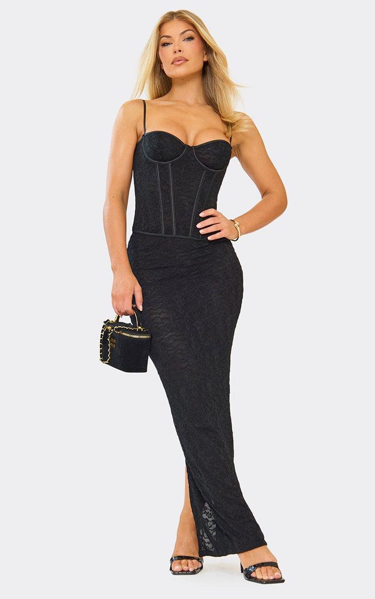 High Neck Flared Sleeve Open Back Top In Black Sequin Lace