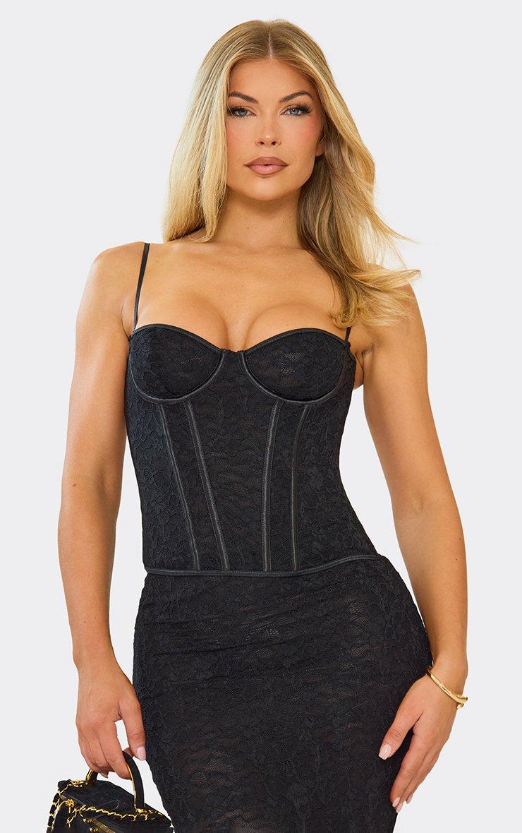 Plunge Halterneck Lace Up Zip Front Detail Top In Black