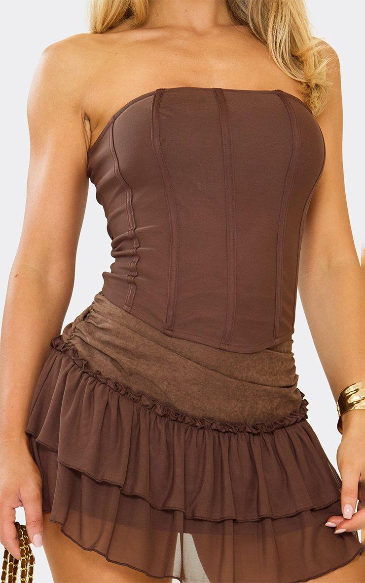 contrast waist frill detail mini skirt in chocolate brown
