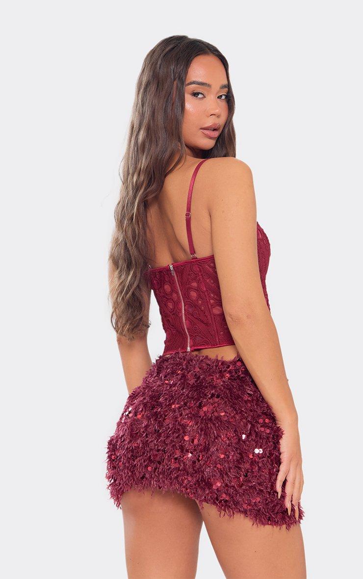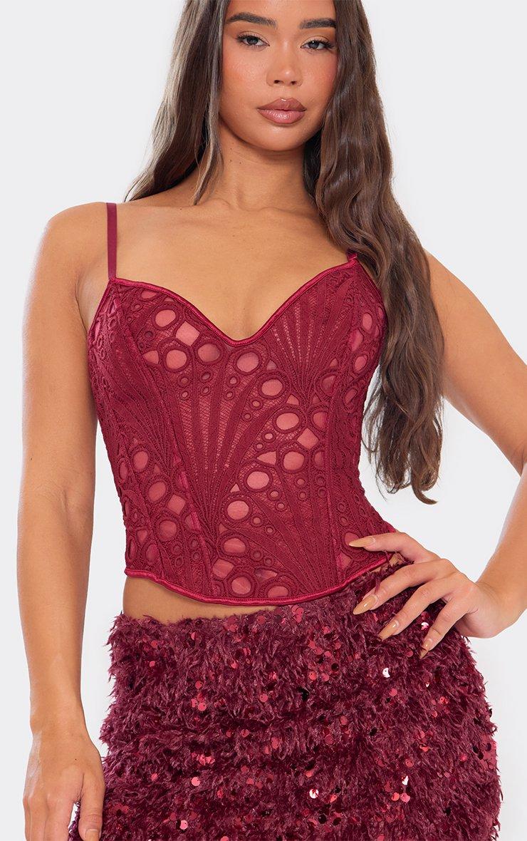Bandeau Hook And Eye Corset Top In Burgundy Lace