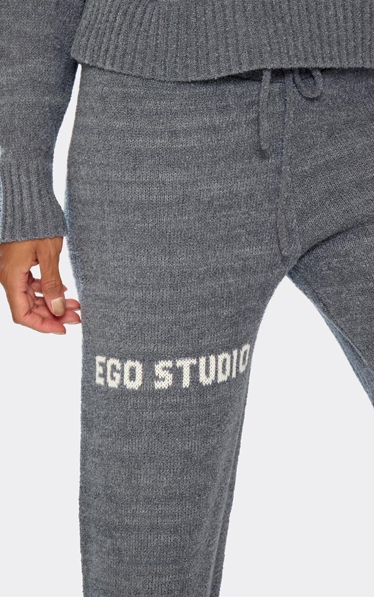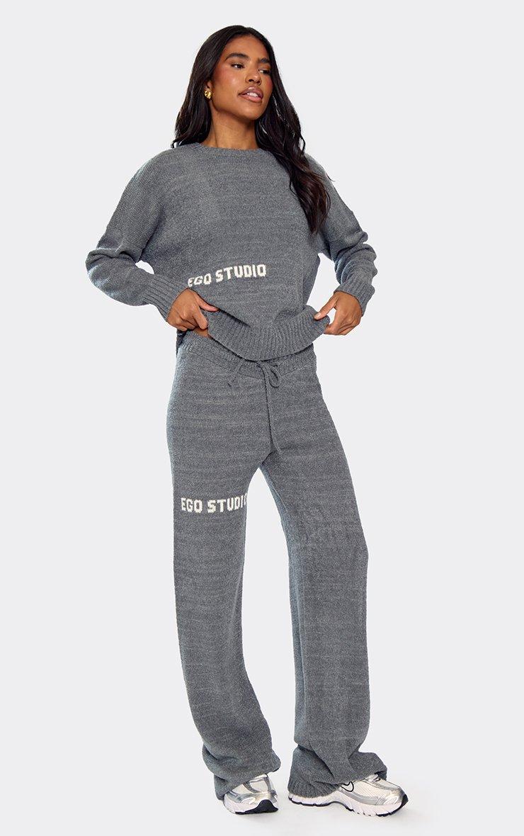 Mid Waist Ego Graphic Straight Leg Trousers In Grey Knit