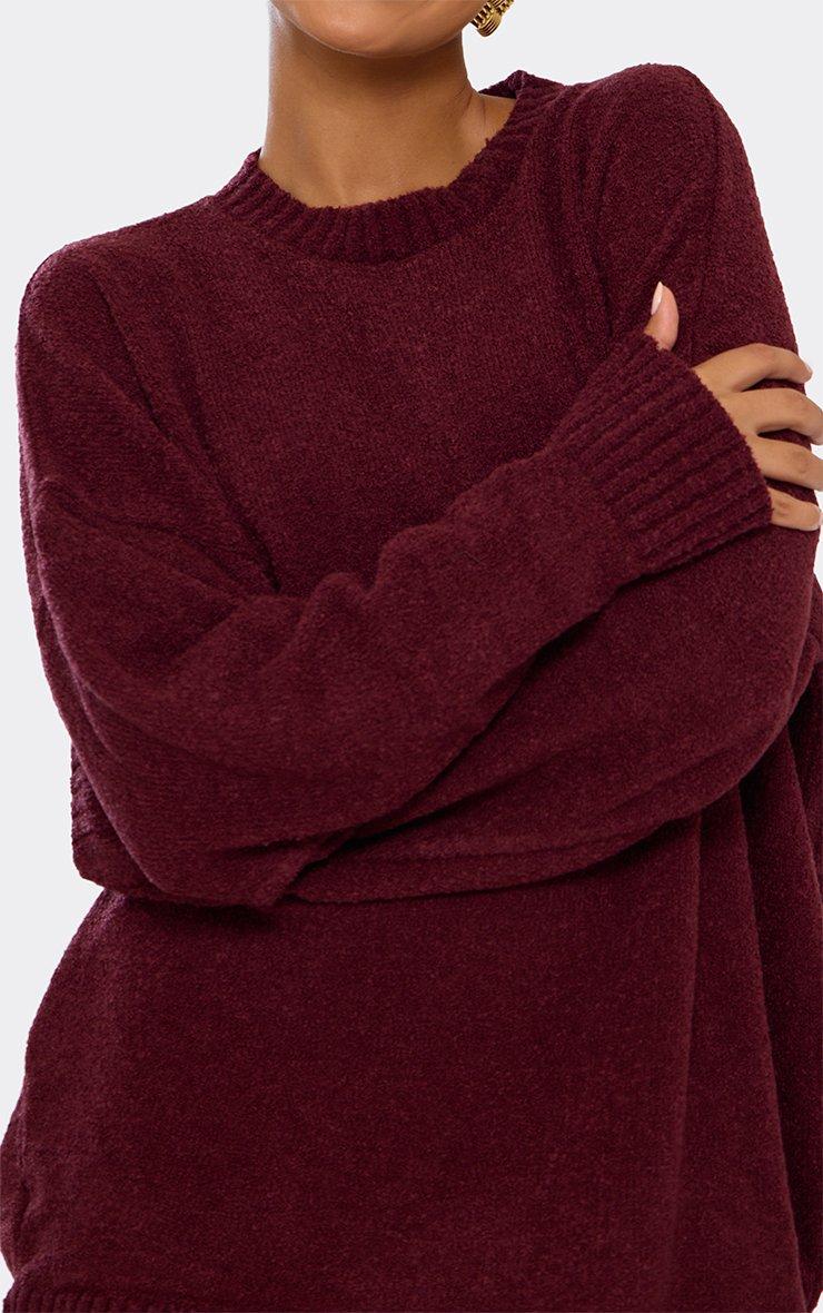 Long Sleeve 'Ego Sport' Oversized Jumper In Burgundy Knit