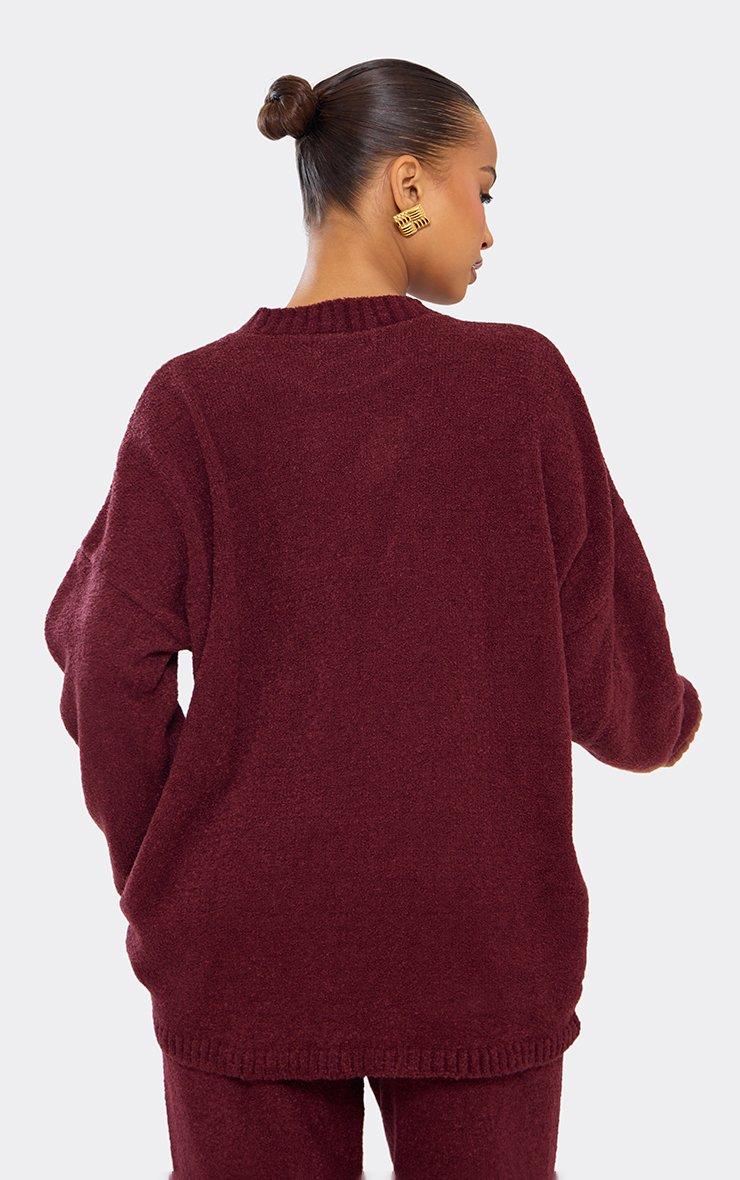 Long Sleeve Crew Neck Ego Graphic Oversized Jumper In Burgundy Knit