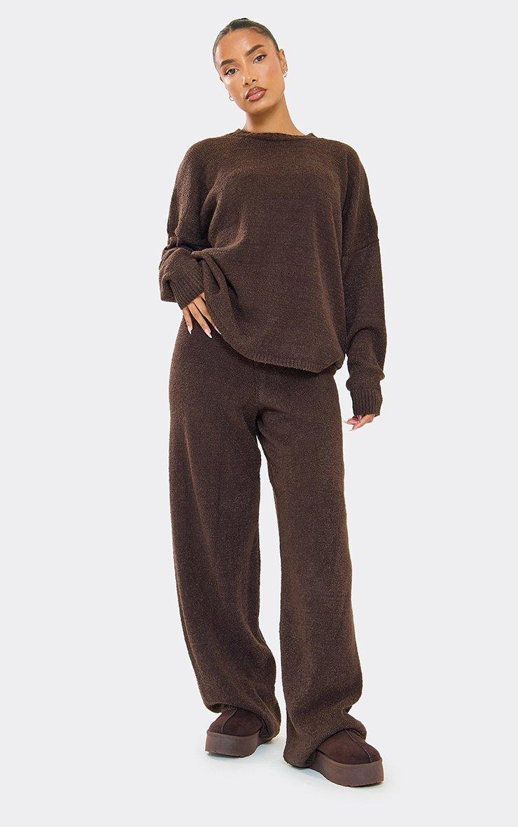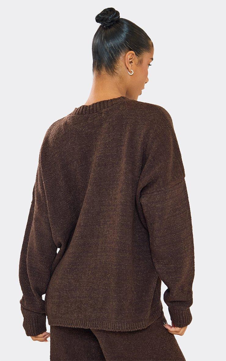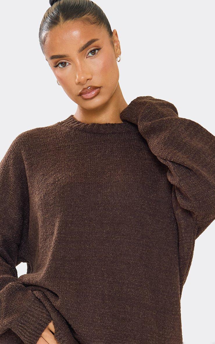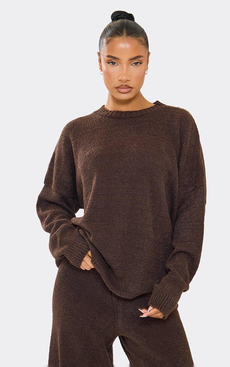 Long Sleeve Oversized Jumper In Chocolate Brown Boucle Knit