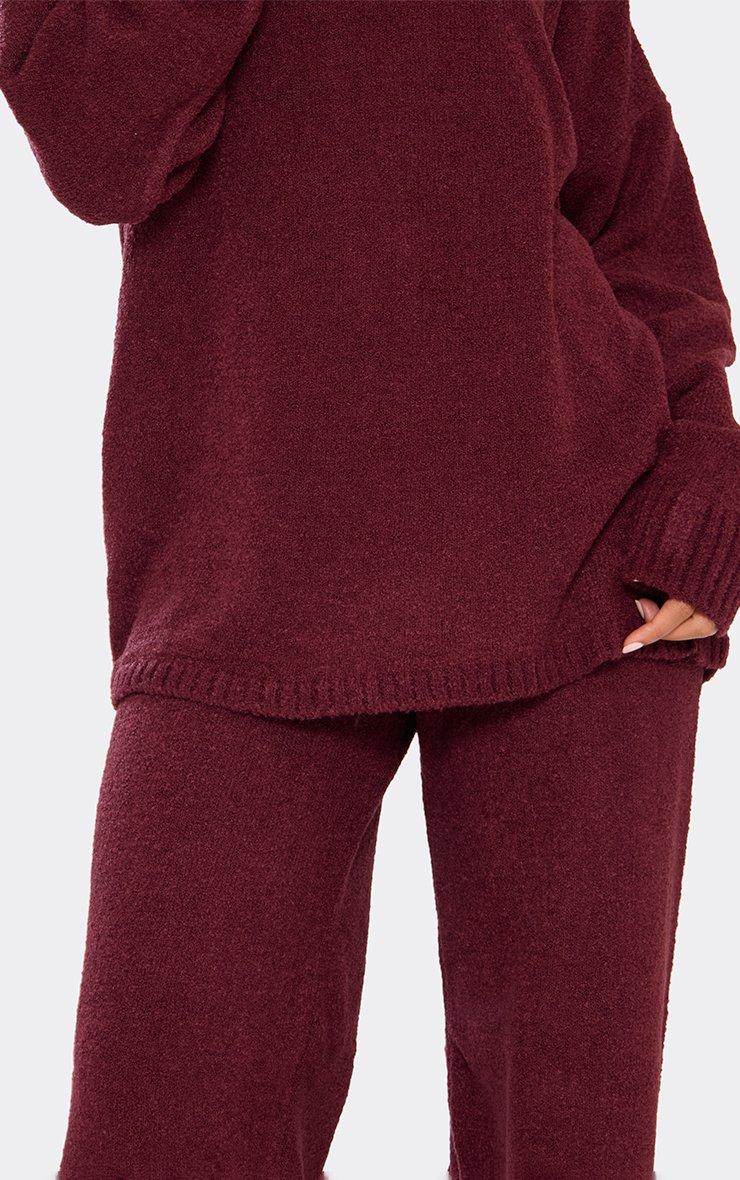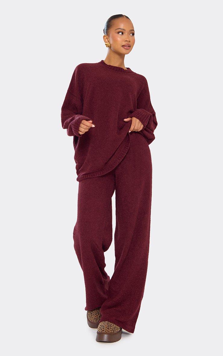Mid Rise Ego Essentials Wide Leg Trousers In Burgundy Knit