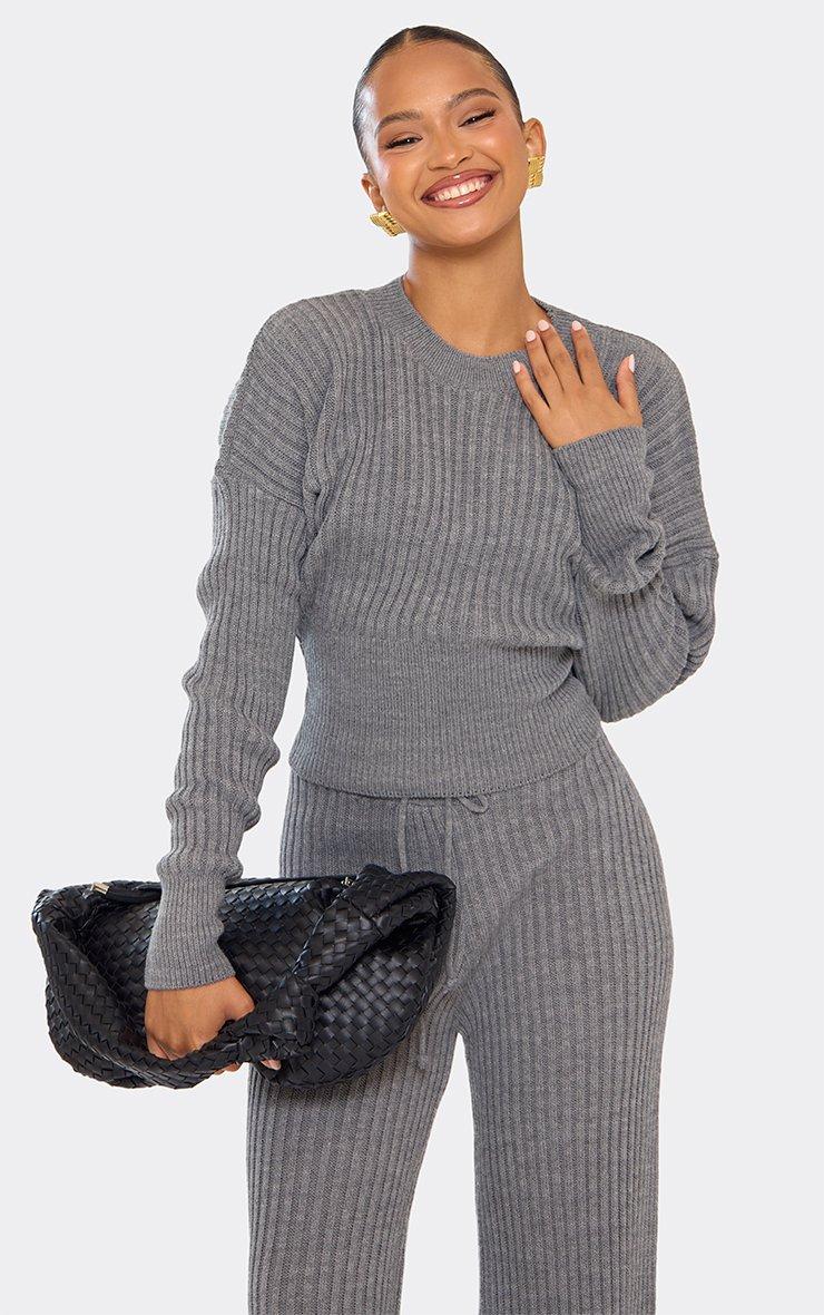 Long Sleeve Ego Studio Oversized Jumper In Charcoal Grey Knit