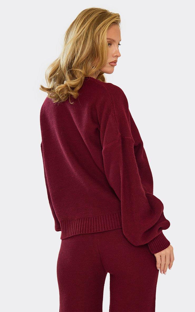Long Sleeve 'Ego Sport' Oversized Jumper In Burgundy Knit