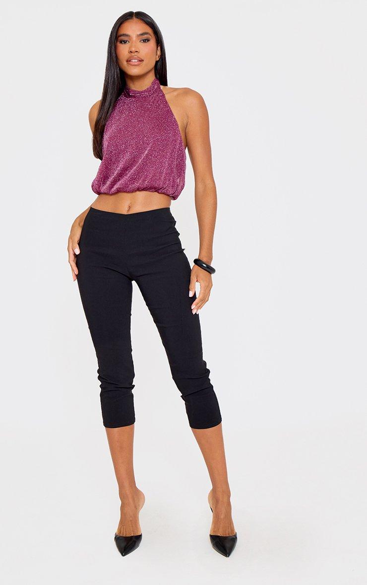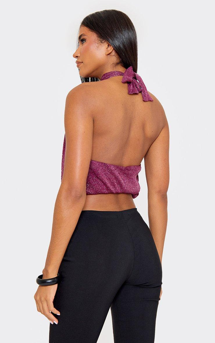 Halterneck Gathered Waist Detail Top In Purple Glitter