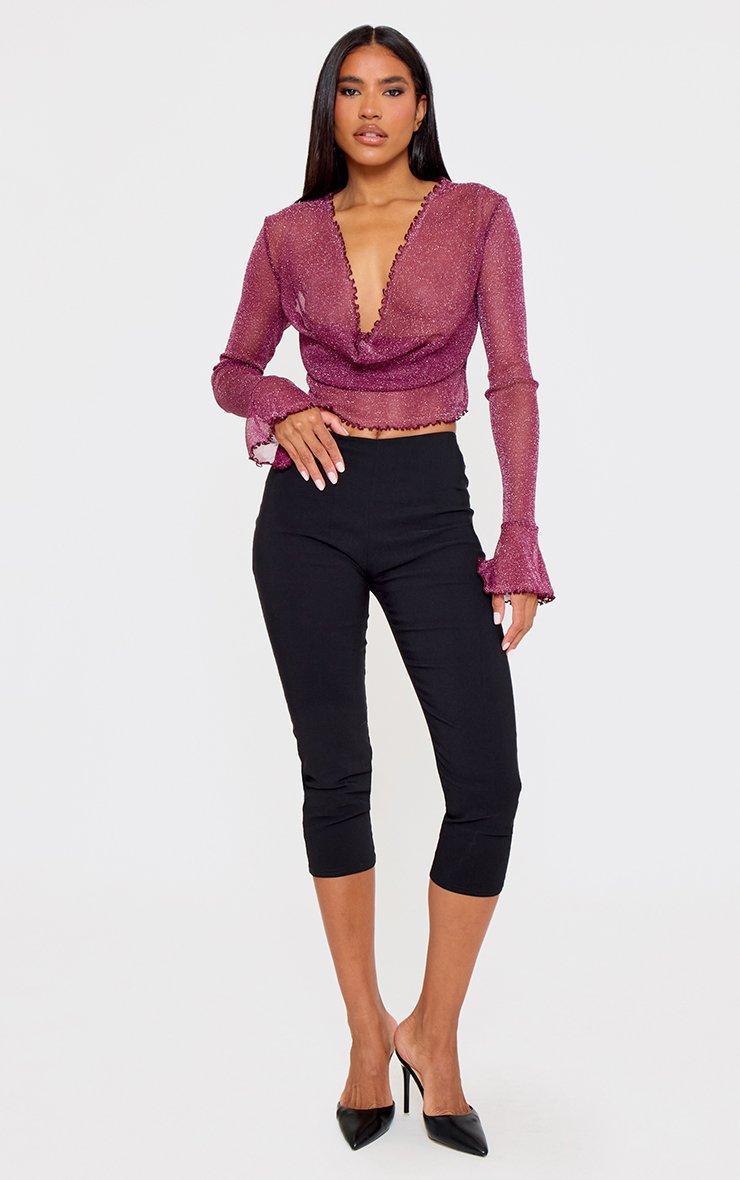 Halterneck Gathered Waist Detail Top In Purple Glitter