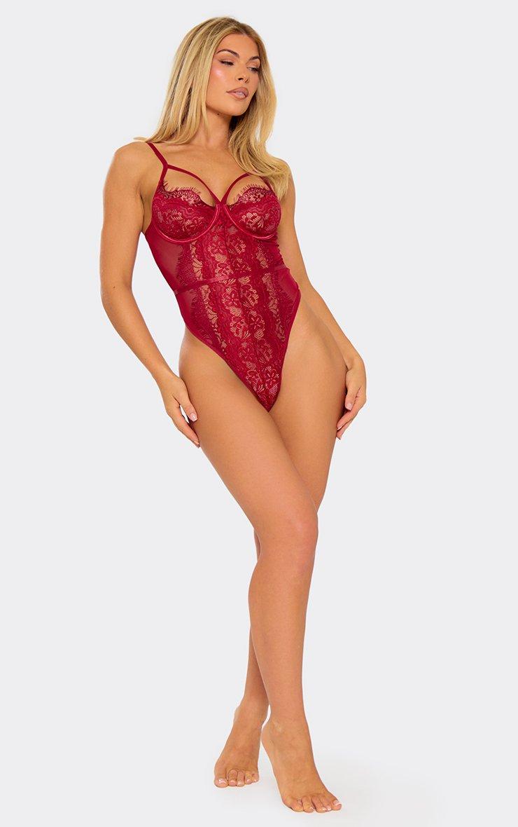 Strappy Underwire Cut Out Bodysuit In Red Lace
