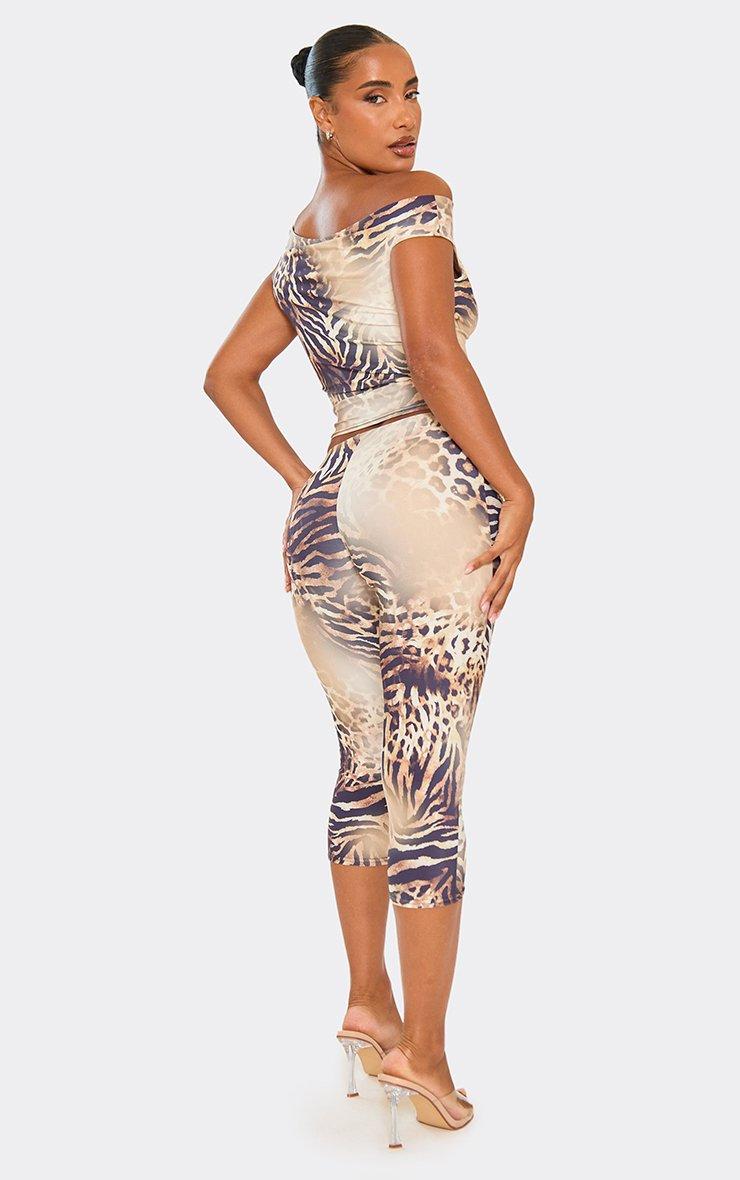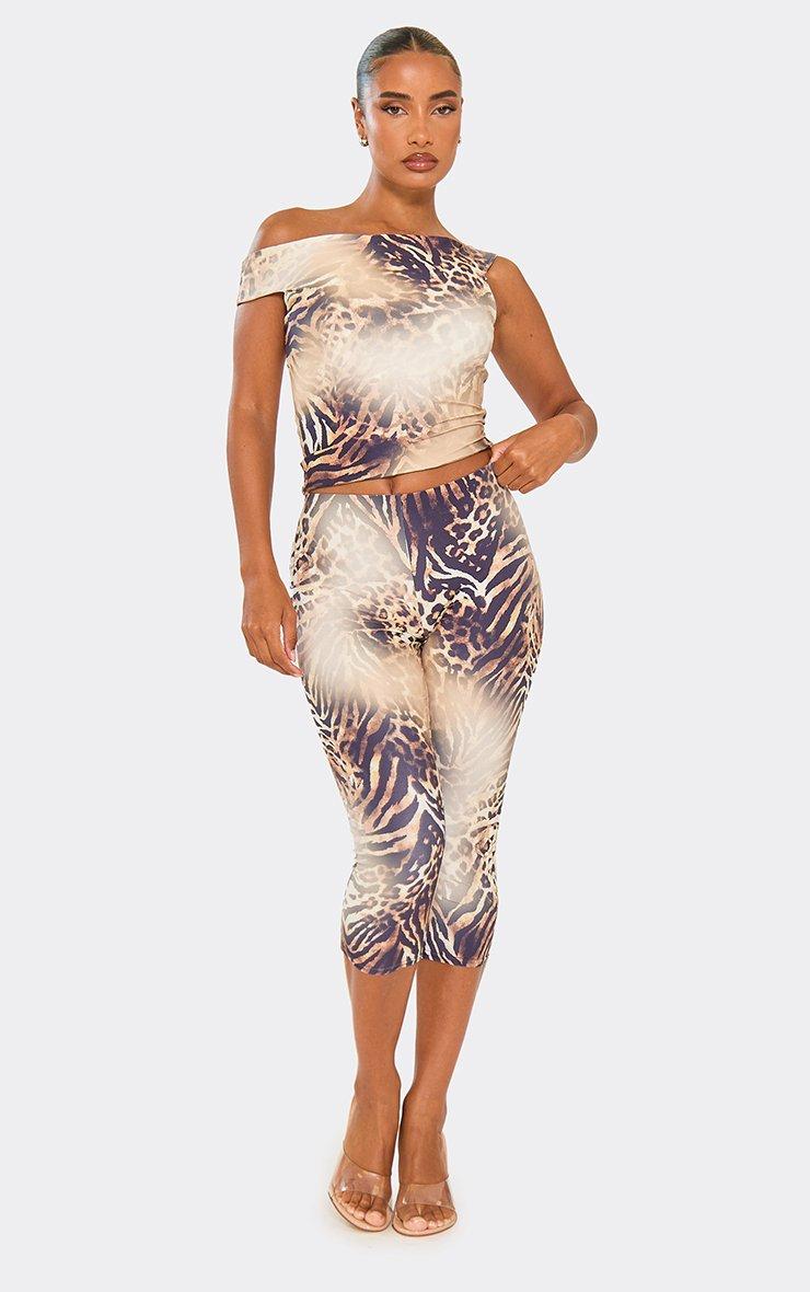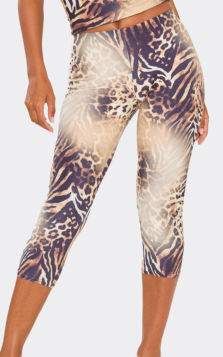 Mid Rise Capri Leggings In Leopard Print Lace