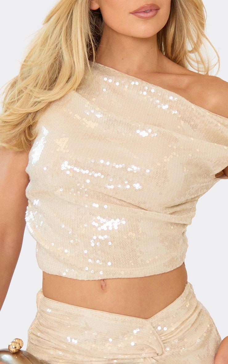 Knot Front Detail Mini Skirt In Champagne Sequin