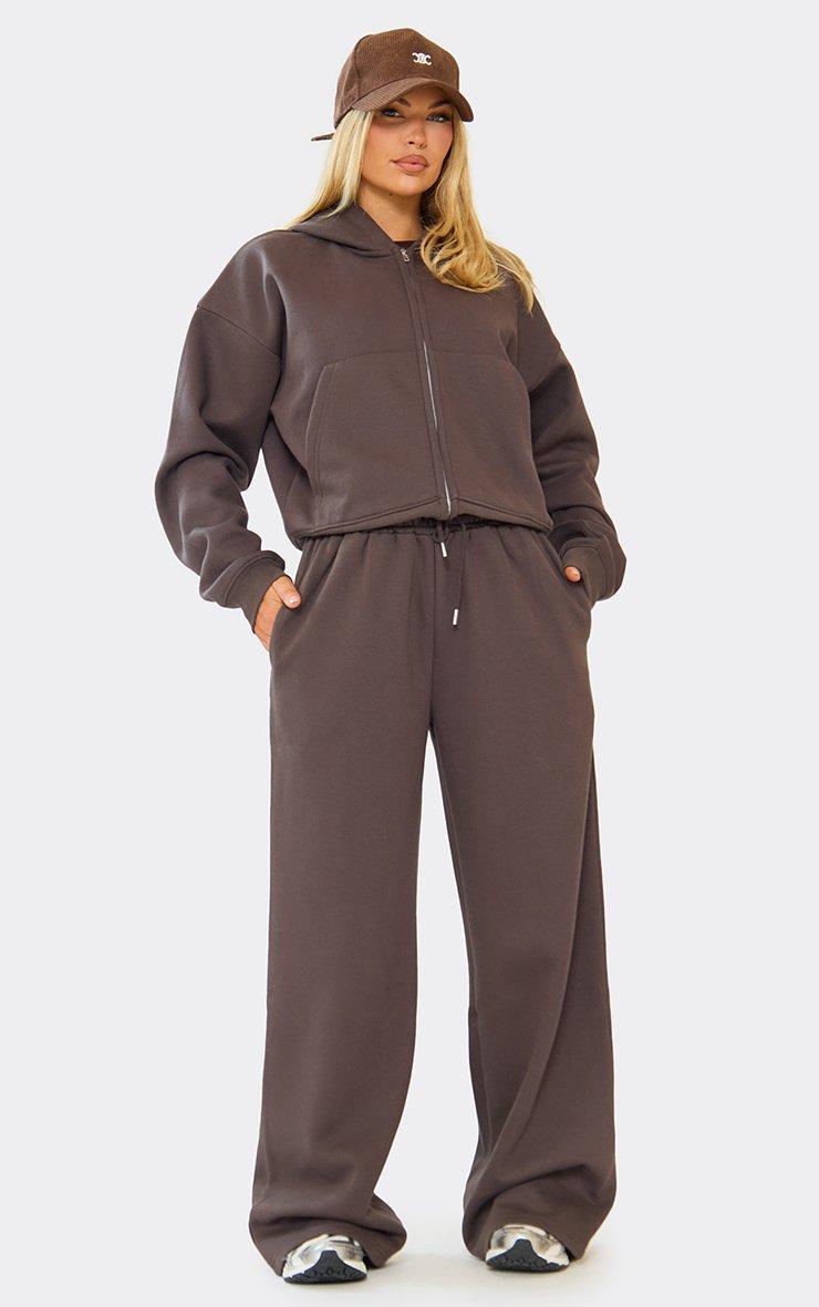 Low Rise Wide Leg Detail Joggers In Chocolate