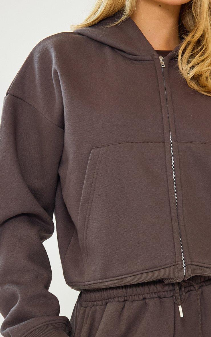 Boxy Oversized Essential Graphic Zip Up Hoodie In Chocolate Brown