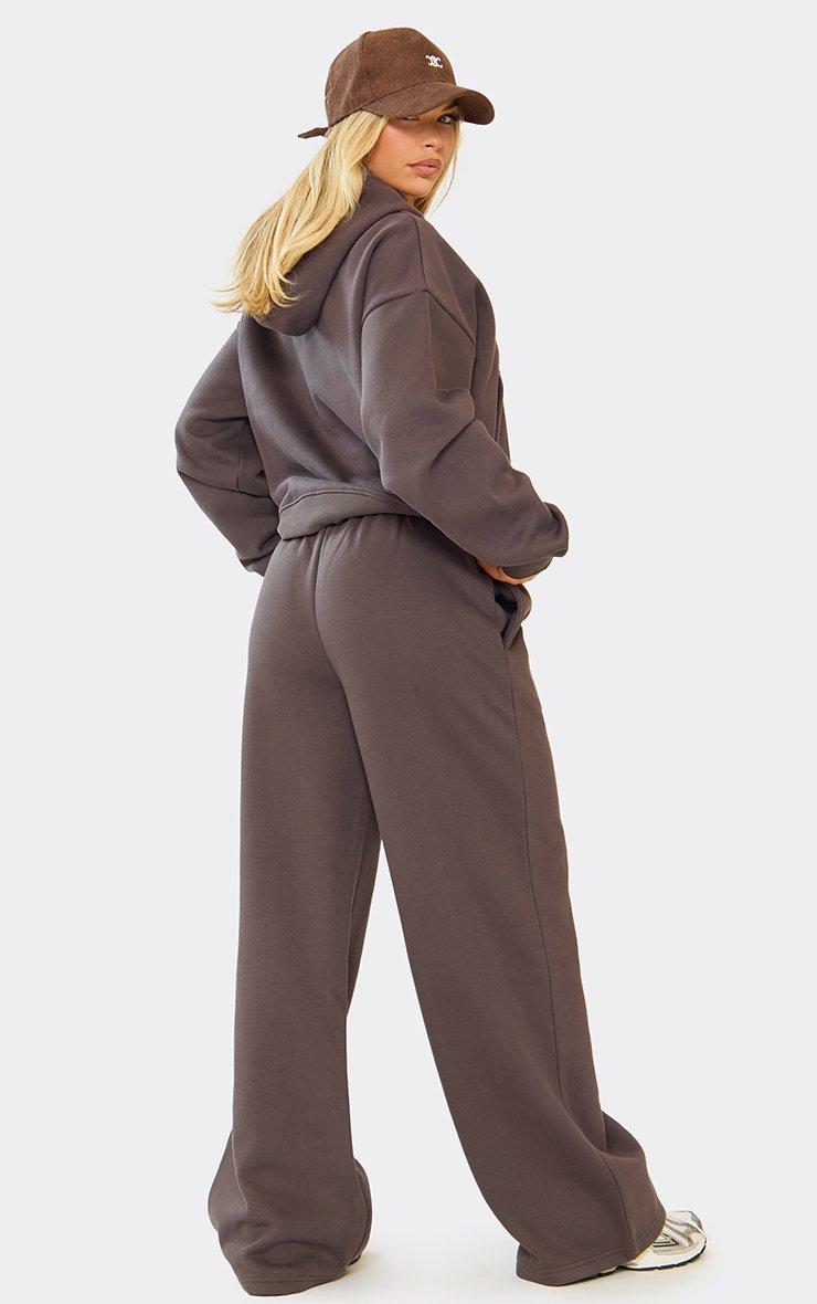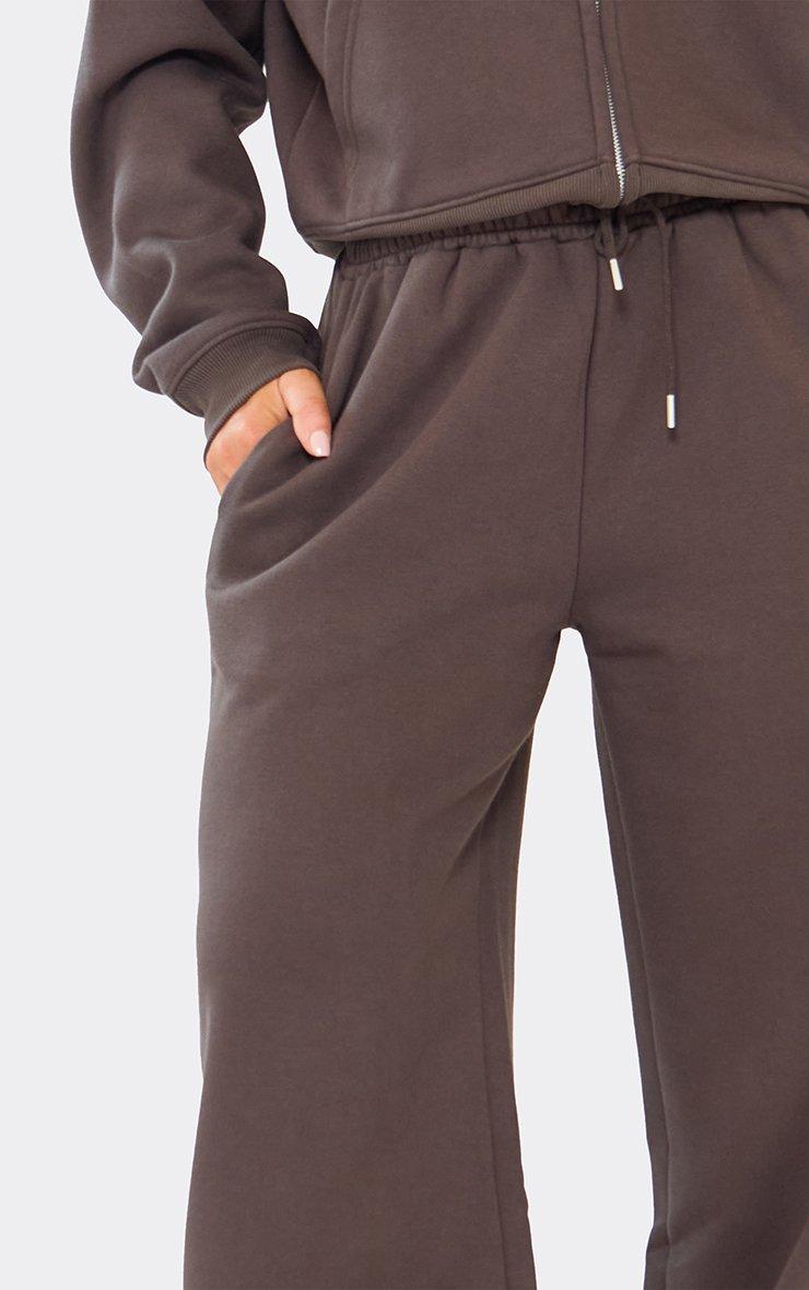 Low Rise Wide Leg Detail Joggers In Chocolate
