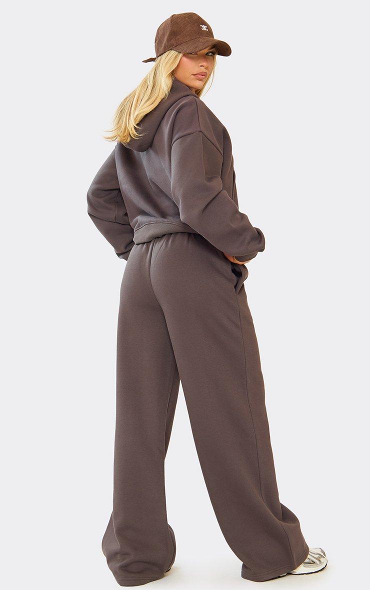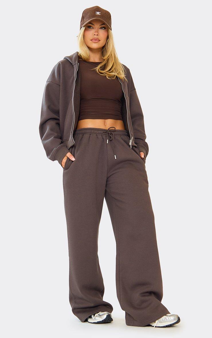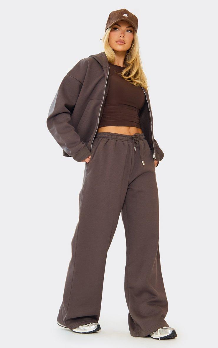 Low Rise Wide Leg Joggers In Chocolate Brown